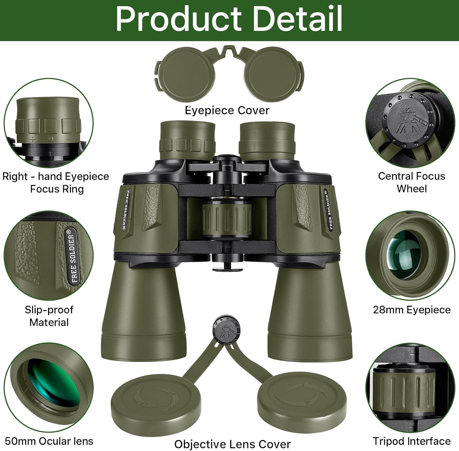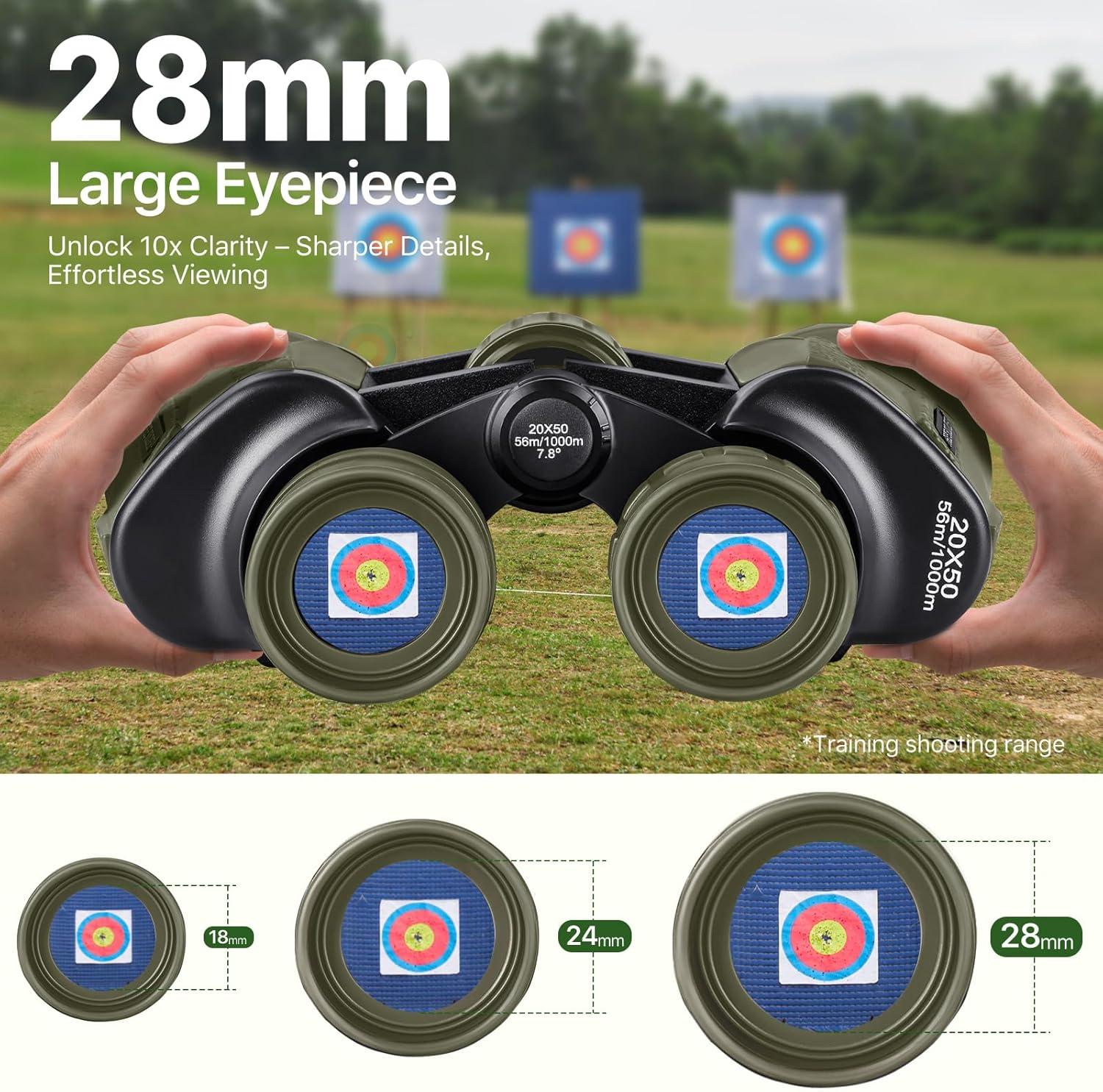 Powerful Binoculars: The binoculars for adults have 20X power magnification, 50mm large objective lens, large field of view of 1000 yards, making them good for fast-moving subjects. They are easy to operate binoculars for adults and kids, perfect binoculars for bird watching, hunting, travel, opera, concert, sports games, safari