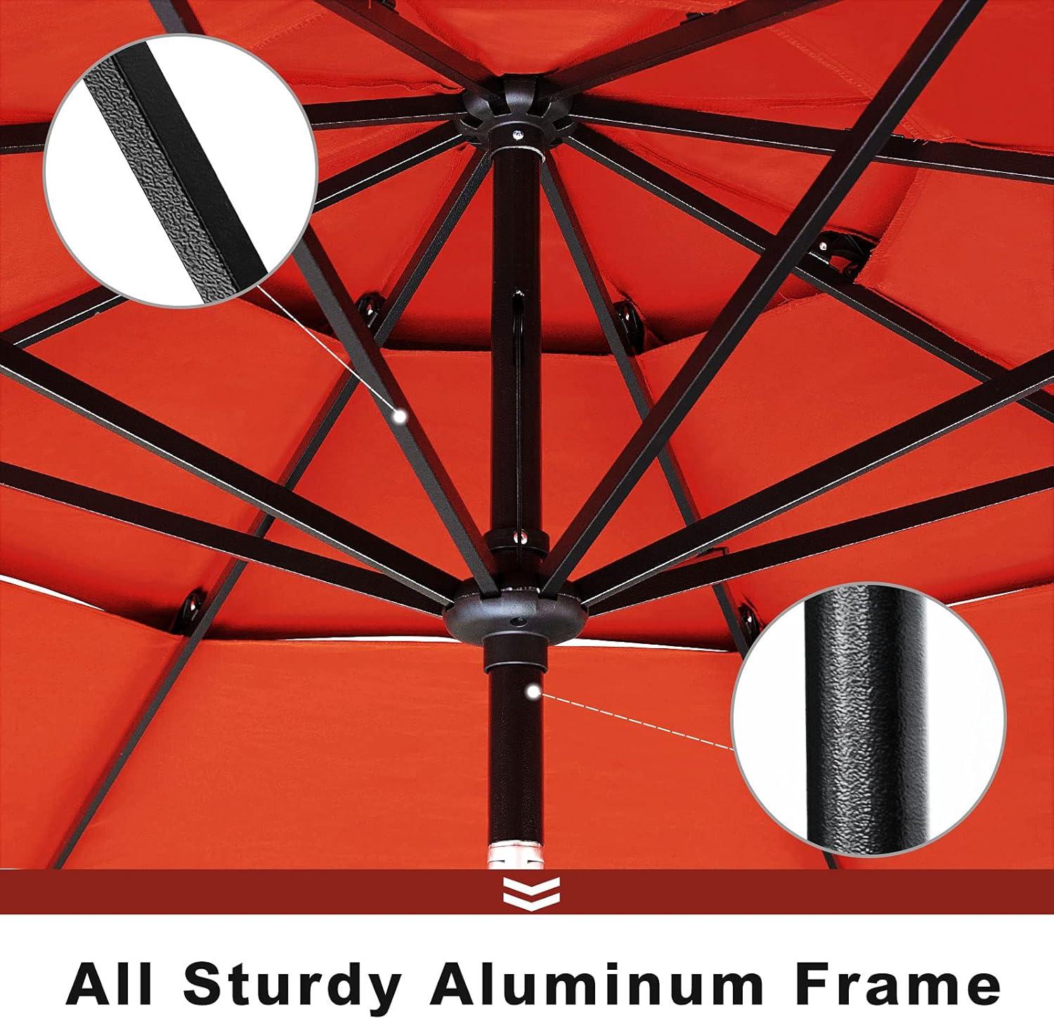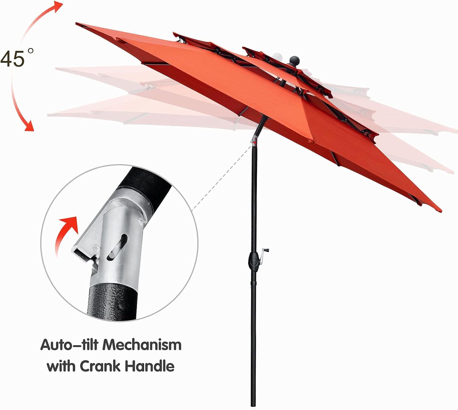 FREE SOLDIER 10FT Auto-tilt Patio Umbrella 3 Tier Market Umbrella Aluminum Outdoor Table Umbrella with Crank (Orange Red)