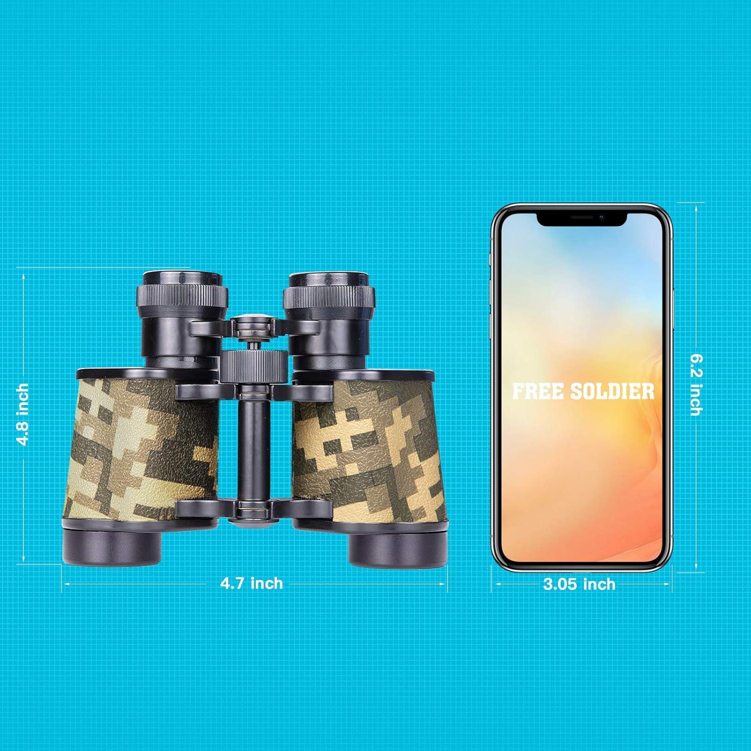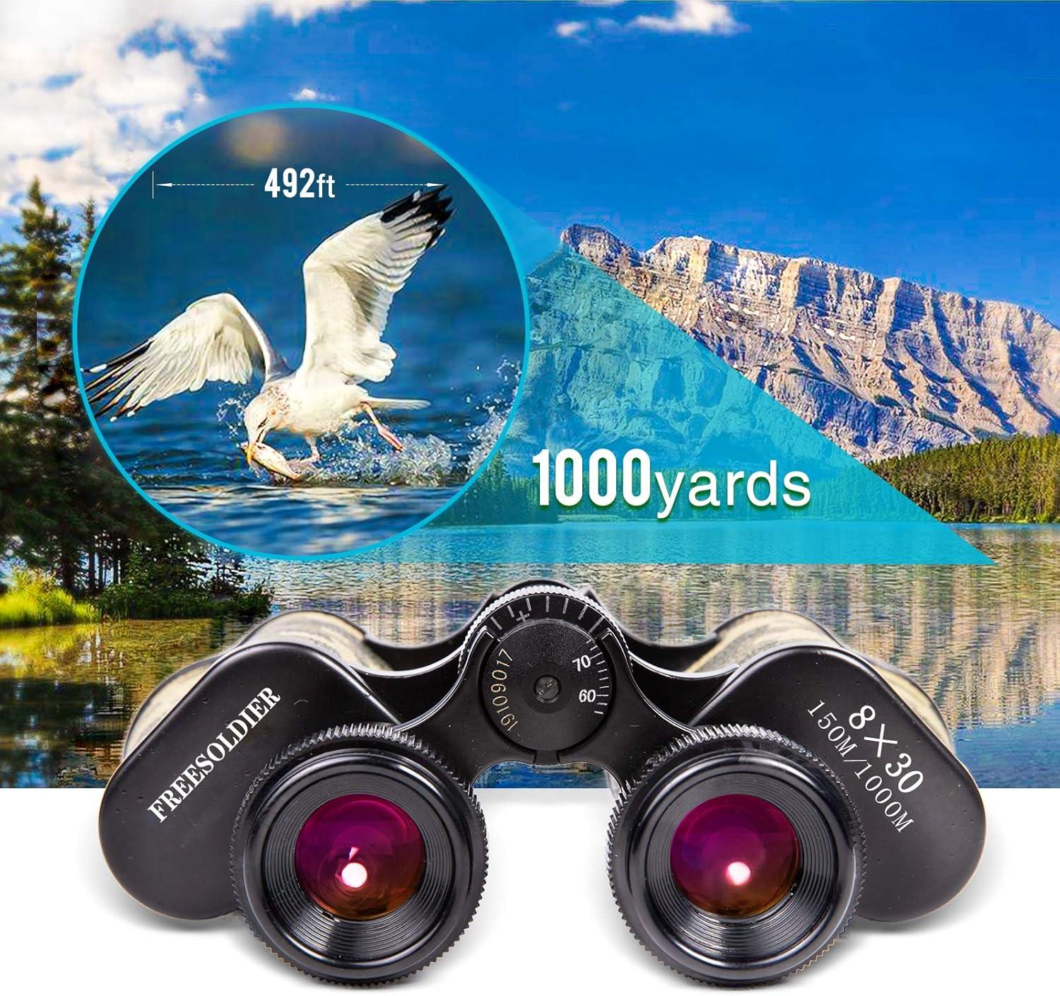 8×30 binoculars feature 8x power magnification, 30mm large objective lens. It can provide a field of view of 1000m high clarity and brightness. Bird watching binoculars for adults are suitable for mountaineering and hunting.