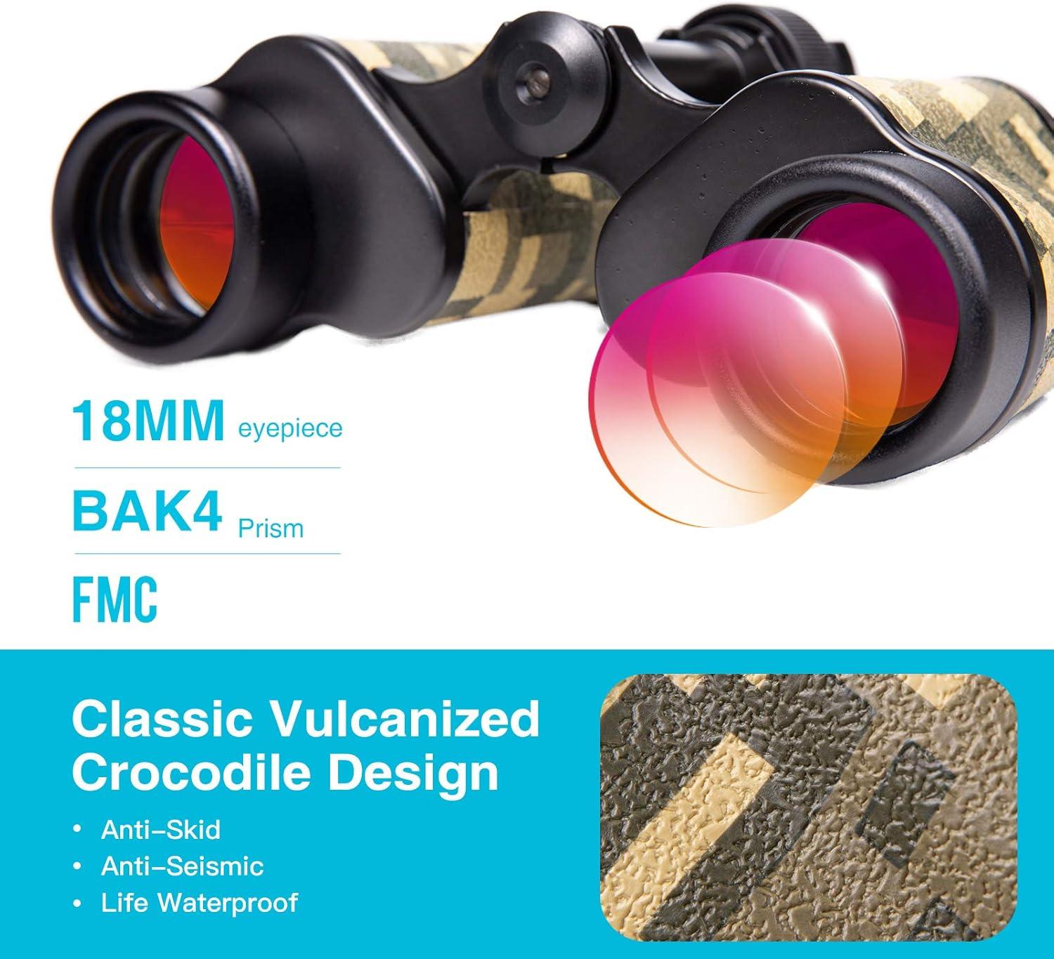 BAK4 prism and multilayer amber coating technology can be the best light transmittance, and it also provides great control of optical reflection to create sharp and colorful images. Professional binoculars with low light night vision.