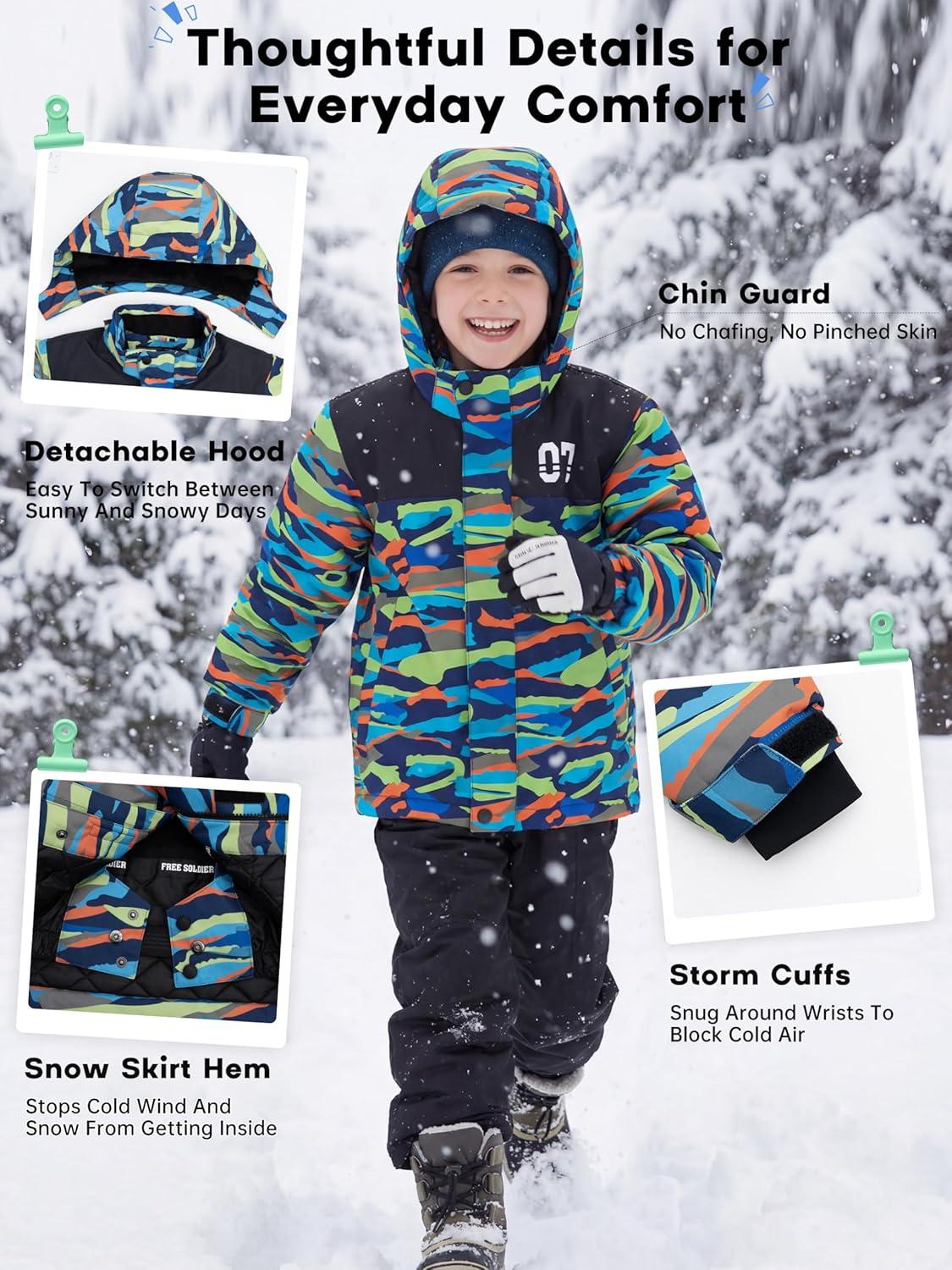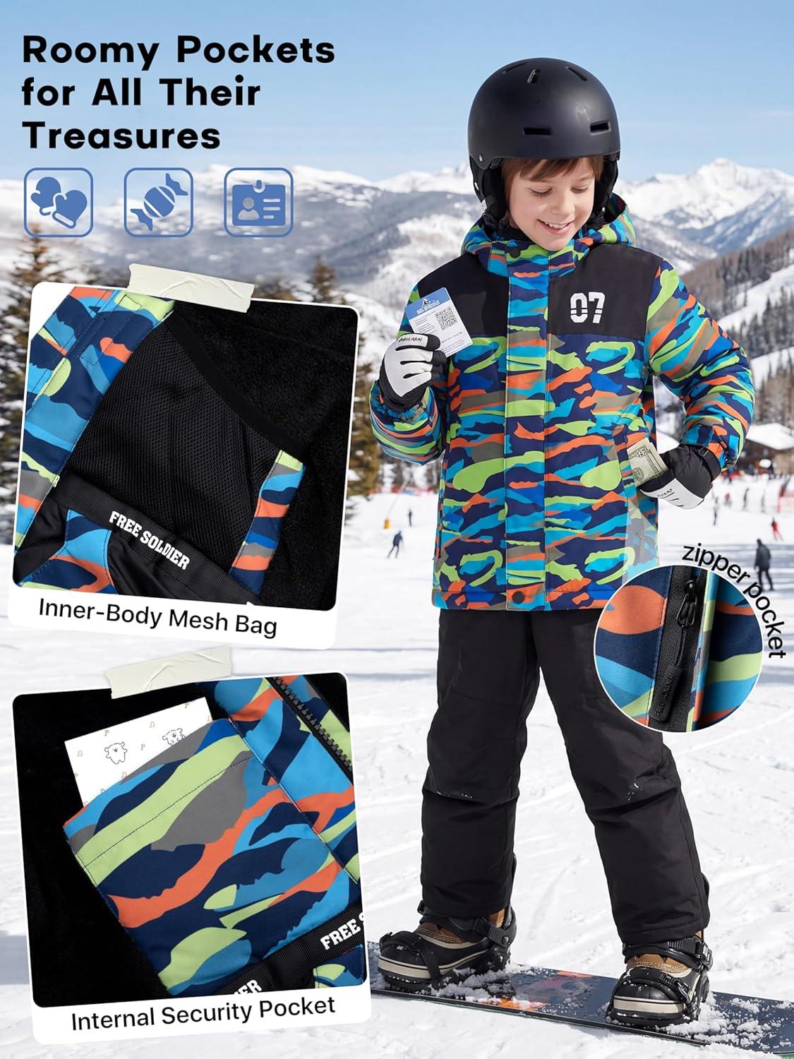Be the first to review “FREE SOLDIER Boy’s Waterproof Warm Ski Jacket Windproof Fleece Thick Kids Winter Coat with Hood for Snowboarding Outdoor(Mountain Stripe)”