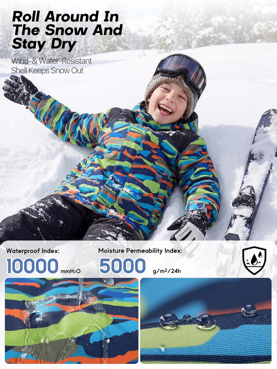 FREE SOLDIER Boy’s Waterproof Warm Ski Jacket Windproof Fleece Thick Kids Winter Coat with Hood for Snowboarding Outdoor(Indigo)