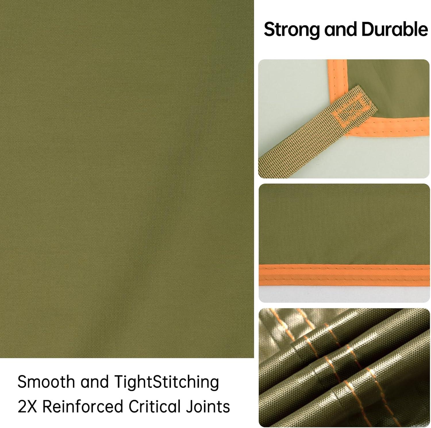 HEAVY DUTY&PORTABLE:Large size in 118″ × 126″ when expended,enough for 2 persons.It's convenient to folded and put into a lightweight stuff sack when not in use,essential tarp gear for your outdoor travel.Net weight:1.2kg(42oz),not super light but heavy duty