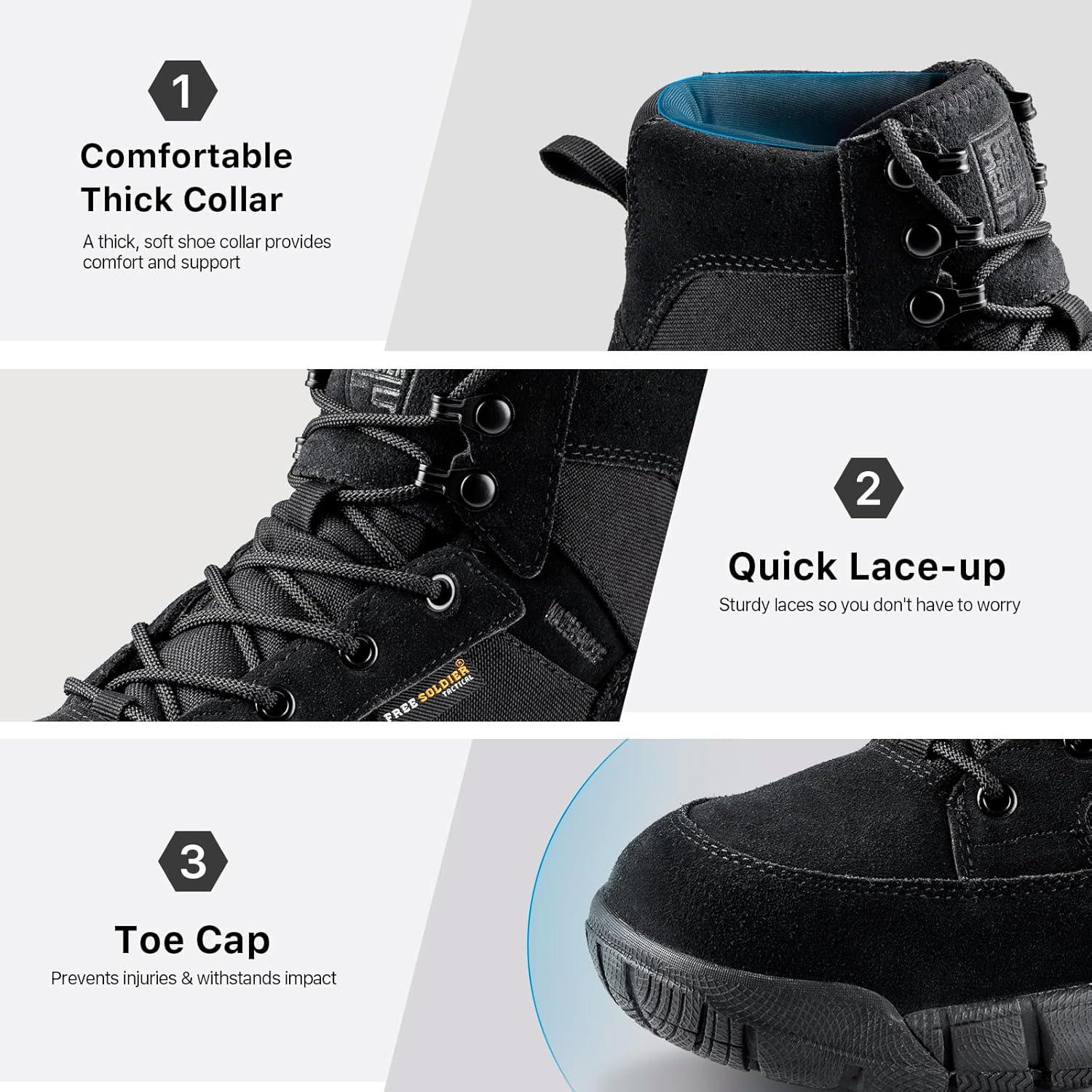 imageFREE SOLDIER Hiking Work Boots Mens Tactical Boots 6 Inches Waterproof Military Boots Outdoors Desert BootsBlack