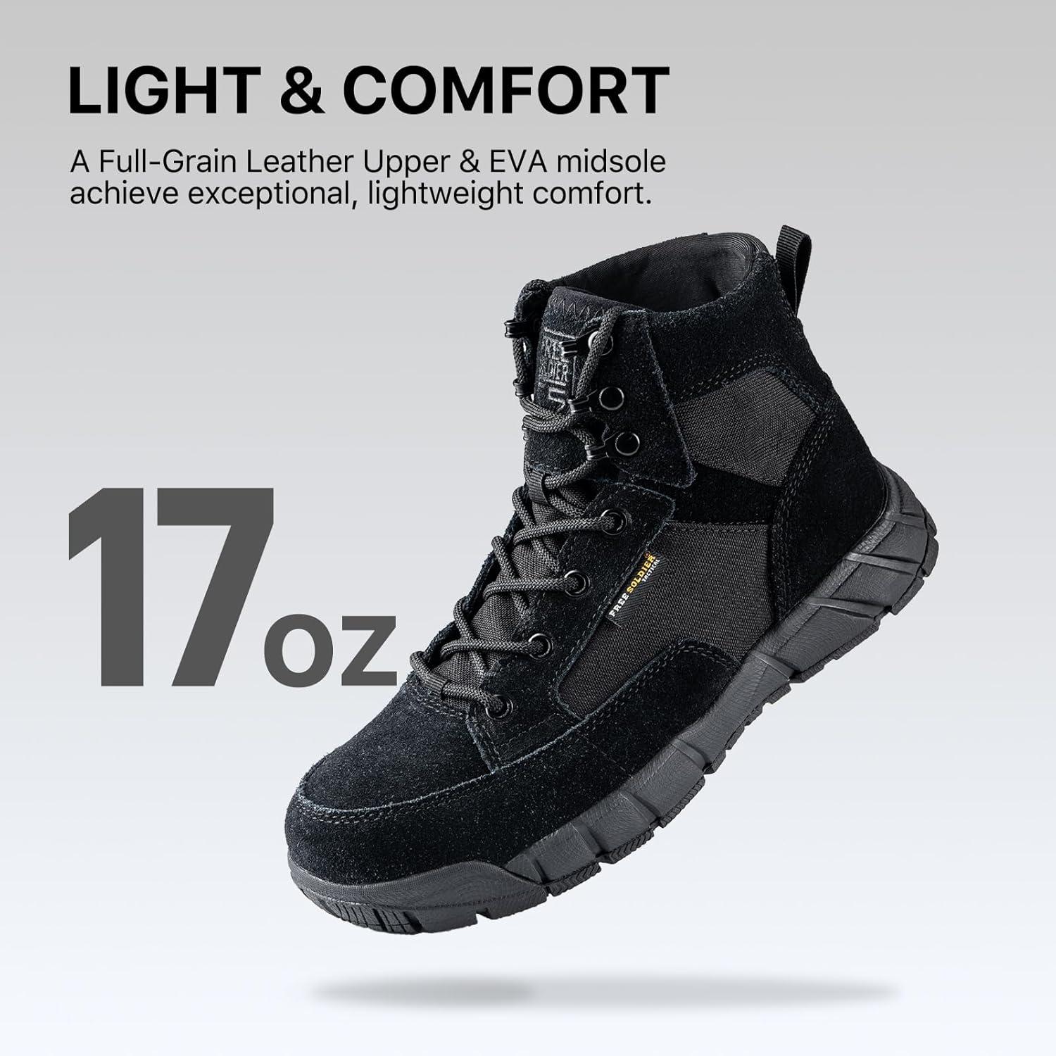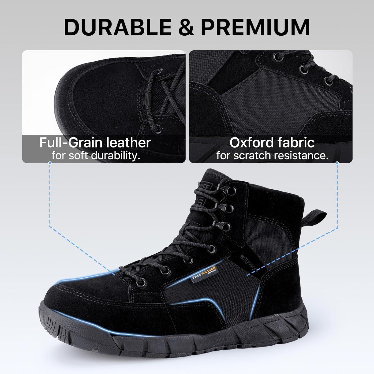 PERFECT INDOOR & OUTDOOR BOOTS FOR MEN – Designed for Spring Summer Autumn and Winter, offers all day comfort for outdoor activities and daily life. Ultralight style of hiking boots men, also can be wore as summer work boots, hunting boots, army boots, interceptor boots, security boots, airsoft boots, duty boots, mountaineering boots, etc
