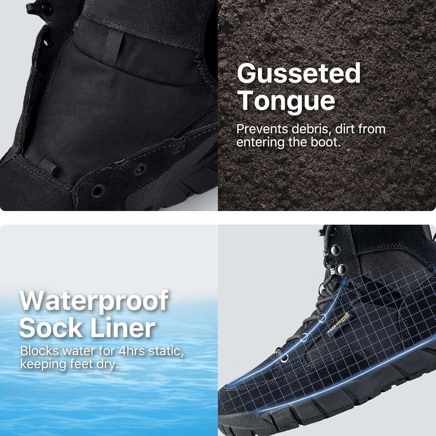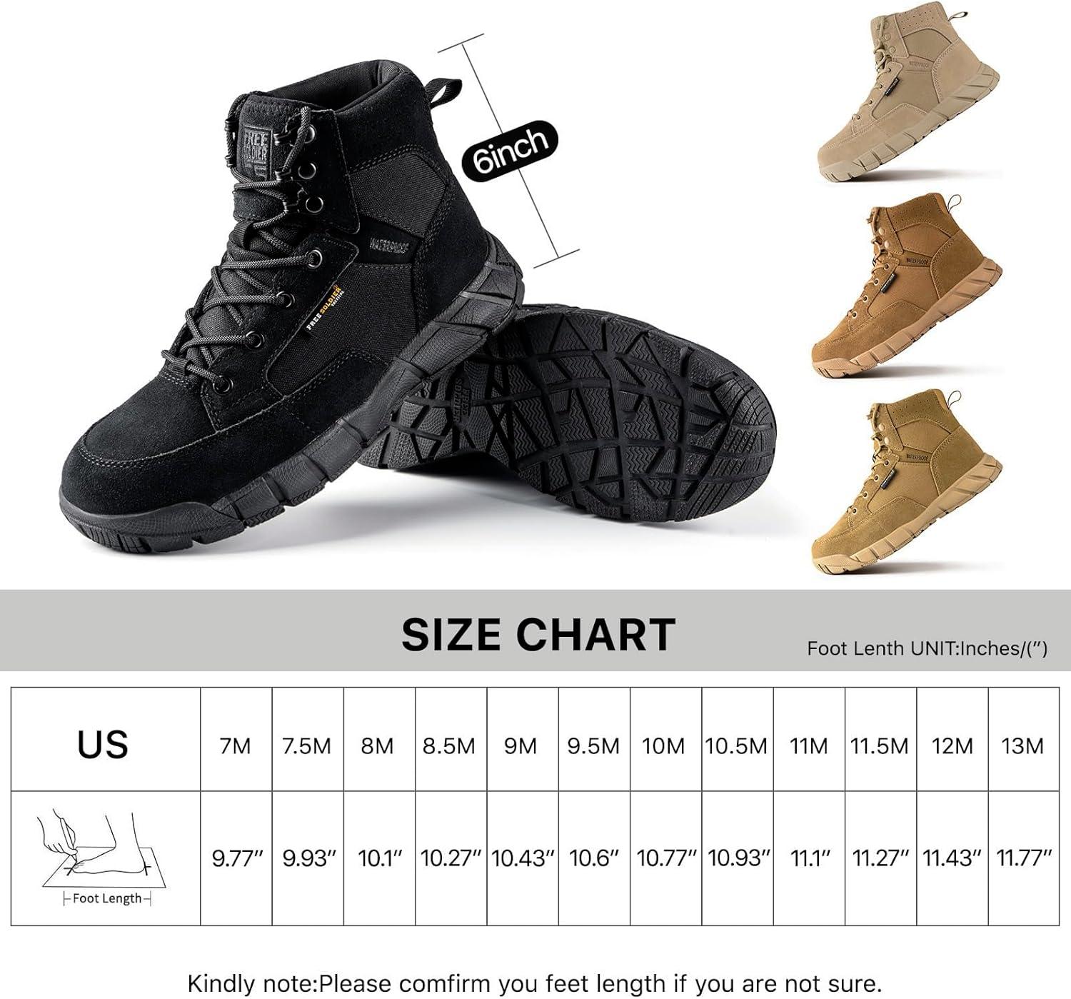 FREE SOLDIER Hiking Work Boots Men's Tactical Boots 6 Inches Waterproof Military Boots Outdoors Desert Boots(Black)