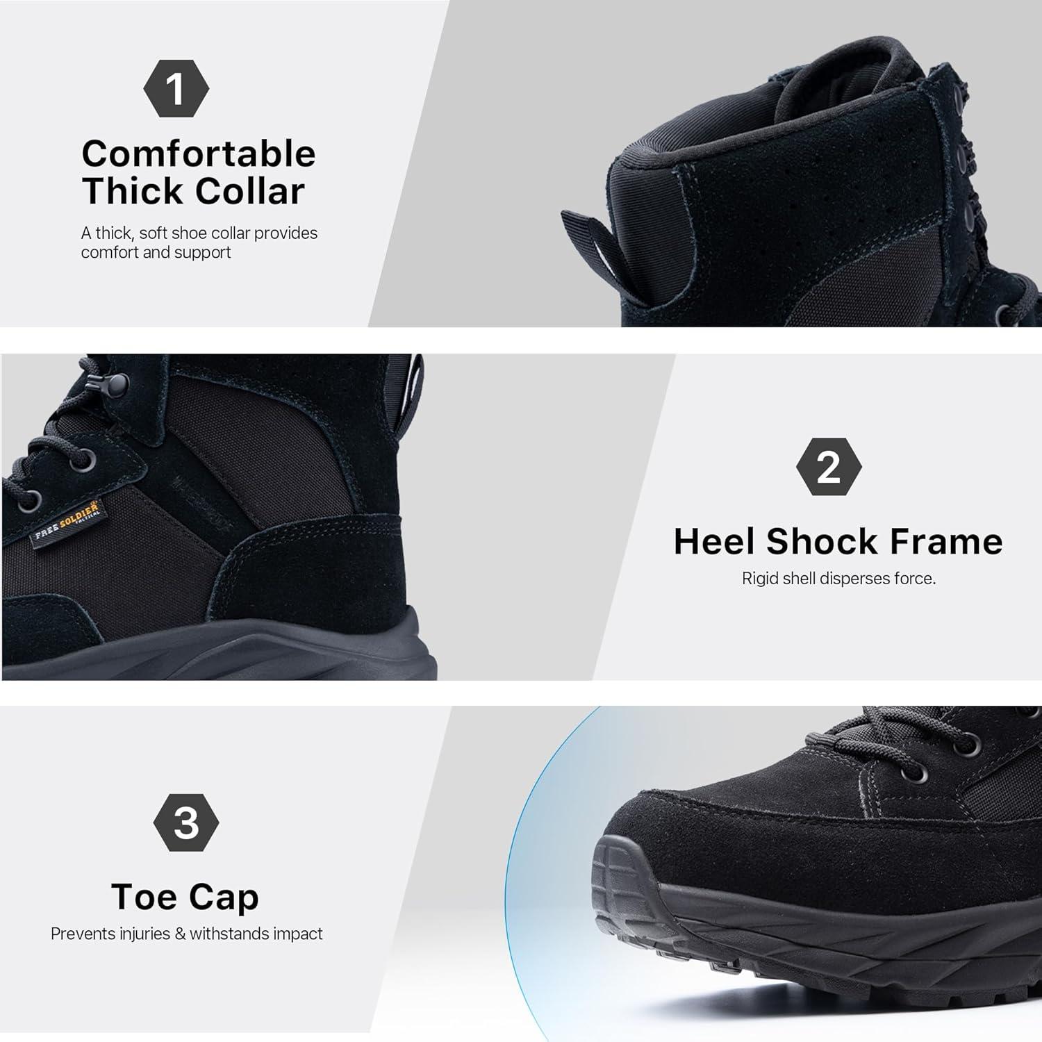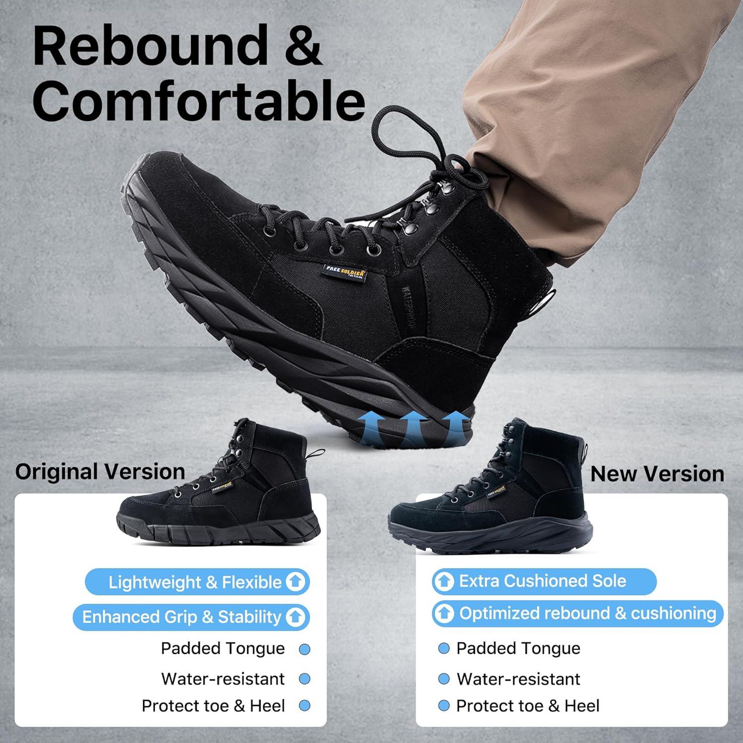 PERFECT INDOOR & OUTDOOR BOOTS FOR MEN – Designed for Spring Summer Autumn and Winter, offers all day comfort for outdoor activities and daily life. Ultralight style of hiking boots men, also can be wore as summer work boots, hunting boots, army boots, interceptor boots, security boots, airsoft boots, duty boots, mountaineering boots, etc