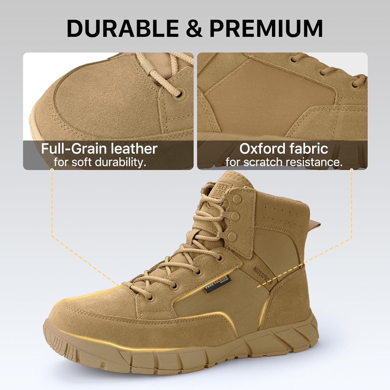 FREE SOLDIER Hiking Work Boots Men's Tactical Boots 6 Inches Waterproof Military Boots Outdoors Desert Boots(Light Brown)