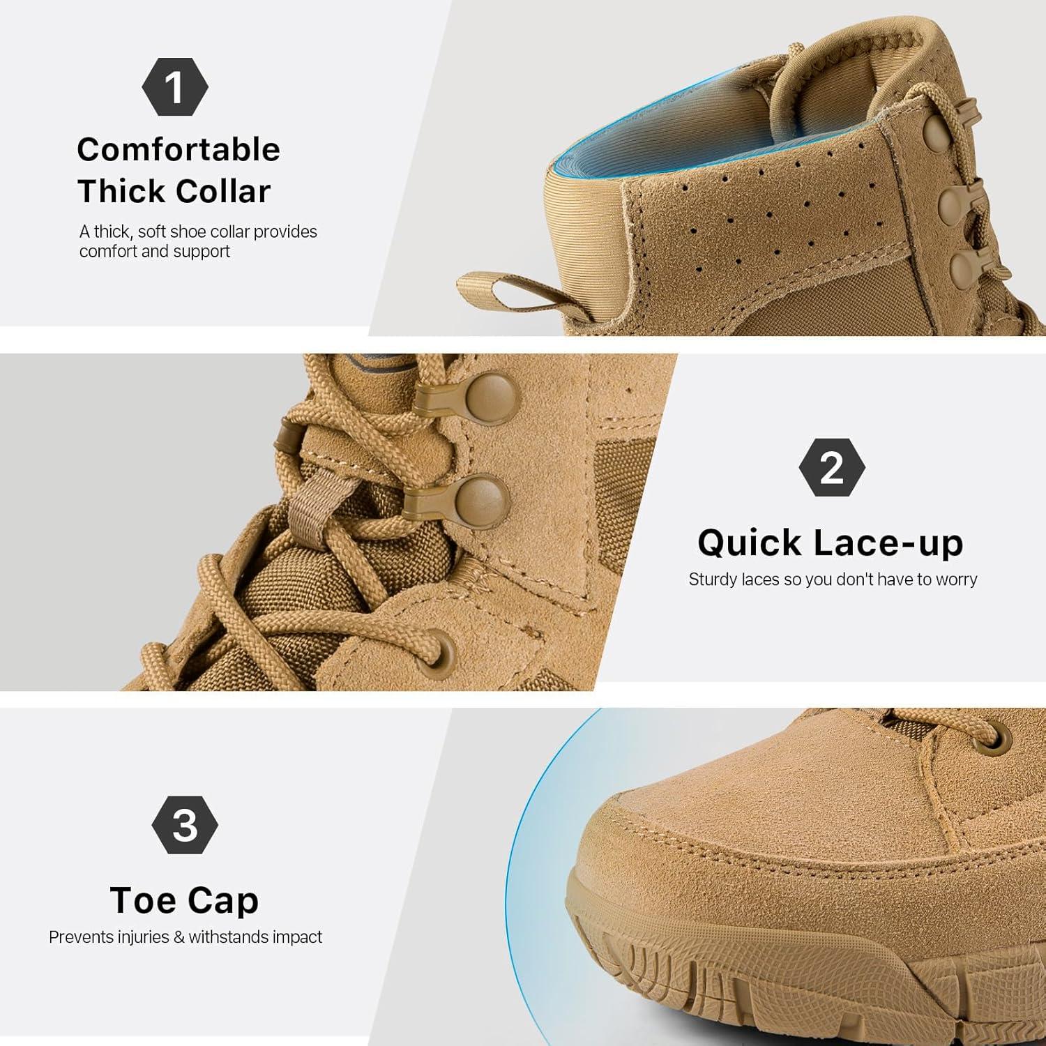 FREE SOLDIER Hiking Work Boots Men’s Tactical Boots 6 Inches Waterproof Military Boots Outdoors Desert Boots(Tan)