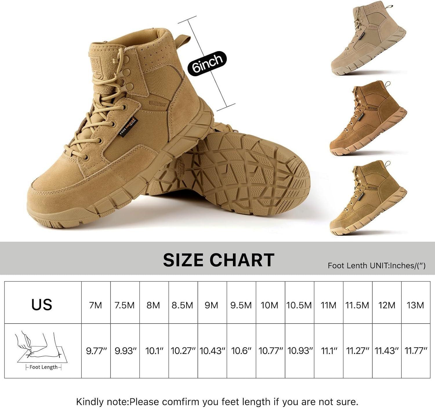 FASHION & PRACTICAL – Tactical design with urban casual fashion style, make it practical to outdoor and daily use. Shaft is approx 6 inches high from heel, heel is approx 1.4 inches, easy to put feet into this combat boots. This military boots work great in hiking, work, tactical, army, hunting, motorcycle and outdoor activities that require durable wearing and long lasting
