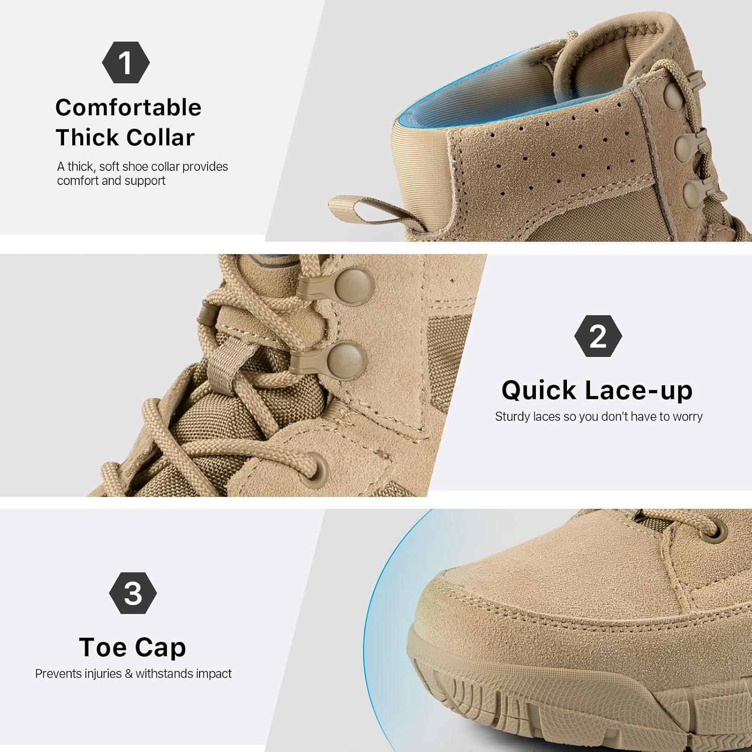 FREE SOLDIER Hiking Work Boots Men's Tactical Boots 6 Inches Waterproof Military Boots Outdoors Desert Boots(Tan)