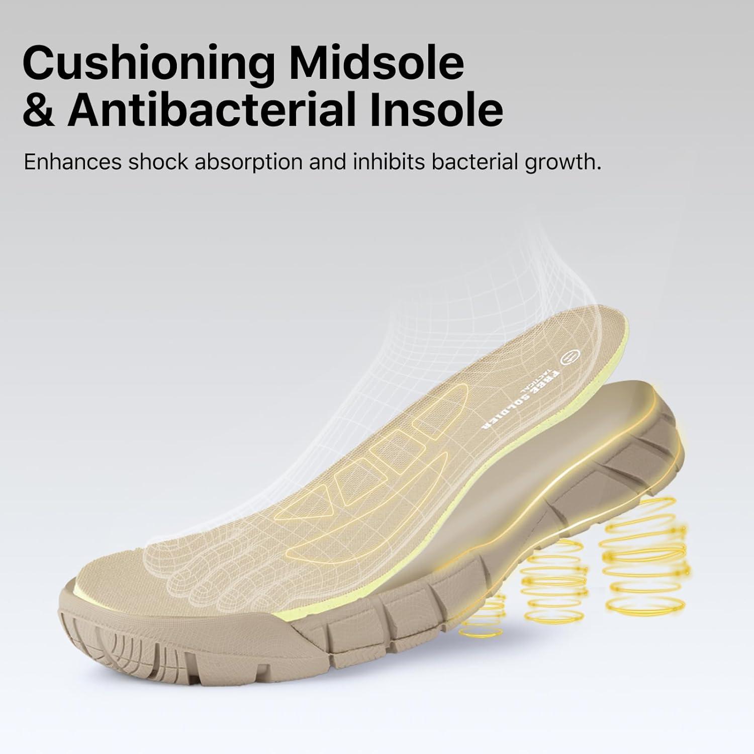 WATERPROOF & COMFORTABLE – Thinner fabric and vented holes in the collar made this work boots more breathable and comfortable in hot weather. Removable insole and breathable lining make this work shoes more sweat releasing and quick-drying, keeps your feet dry