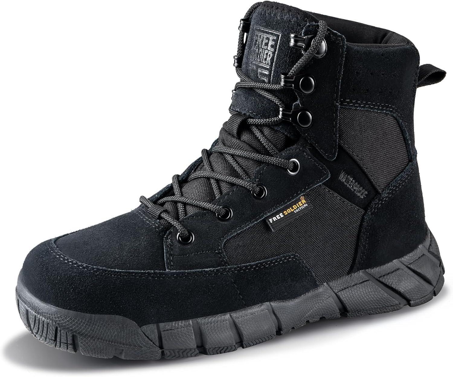 FREE SOLDIER Hiking Work Boots Women's Tactical Boots 6 Inches Lightweight Waterproof Military Boots Outdoors Desert Boots(Black)