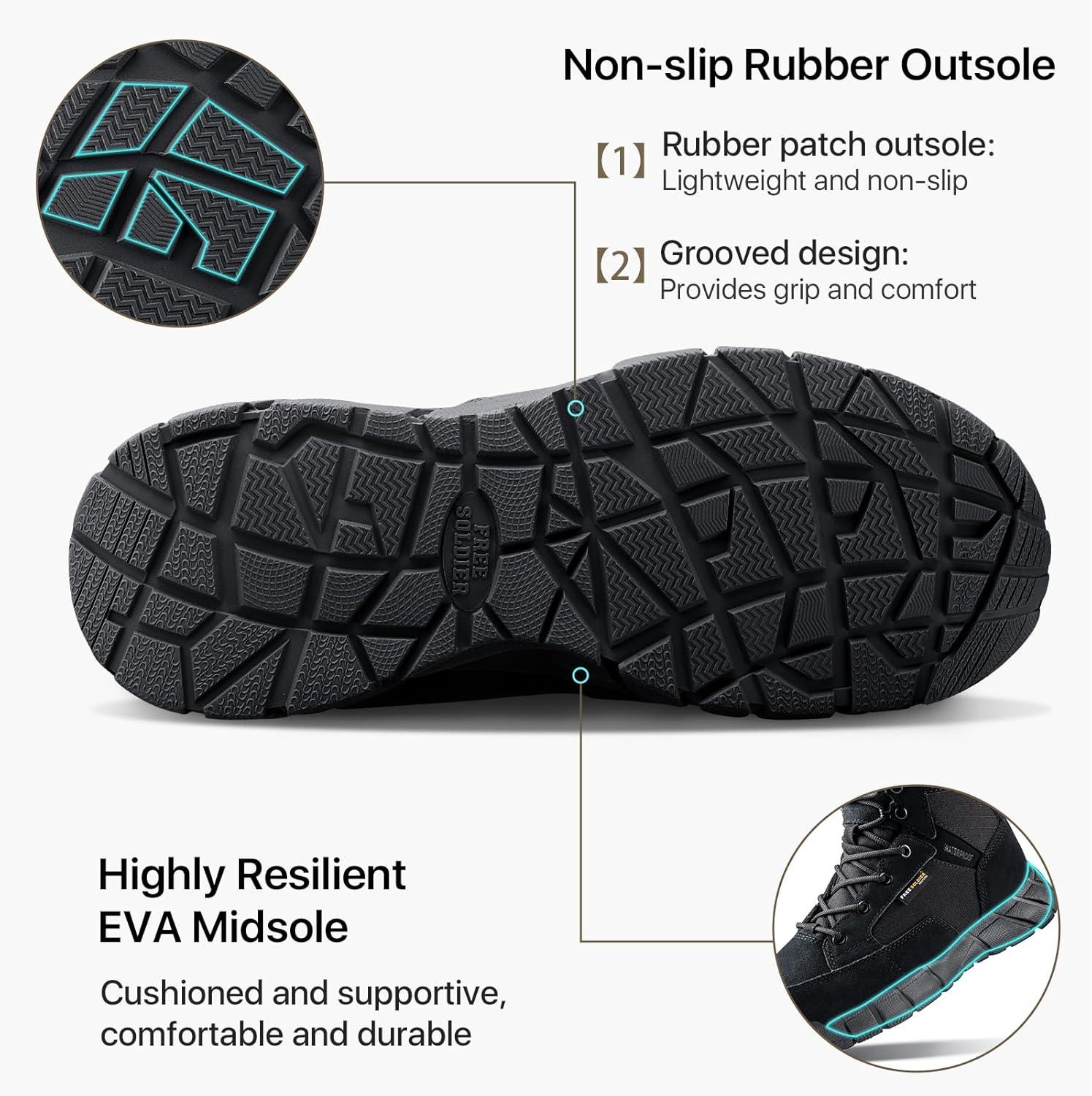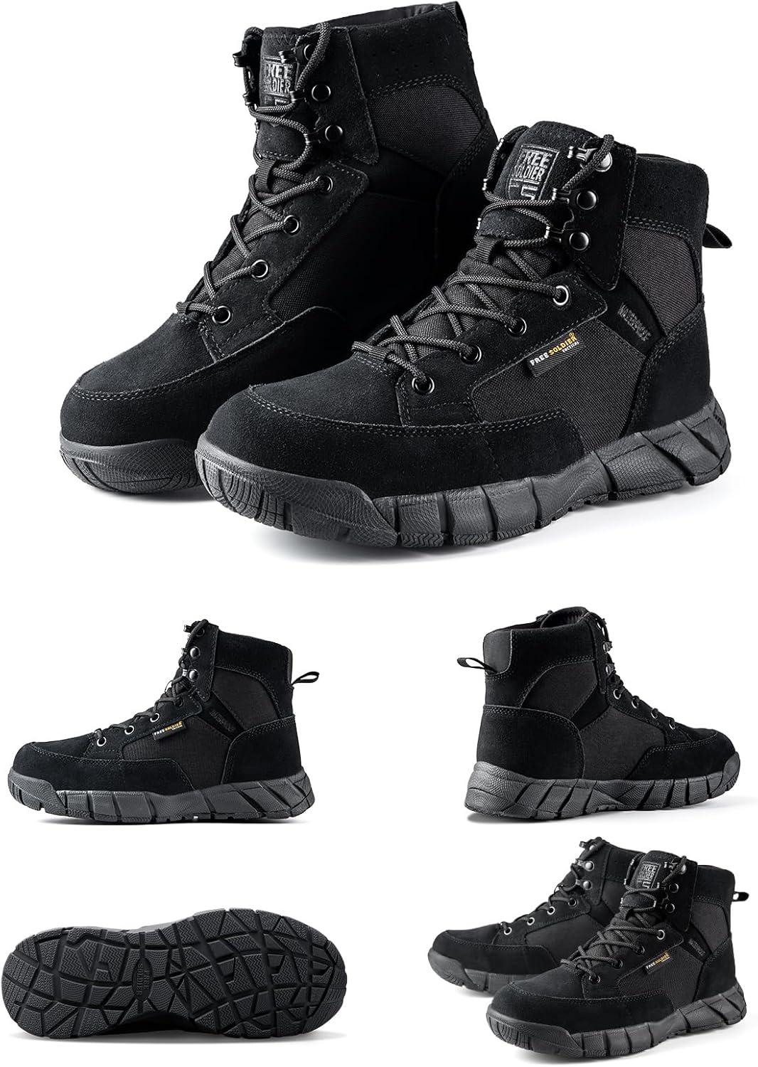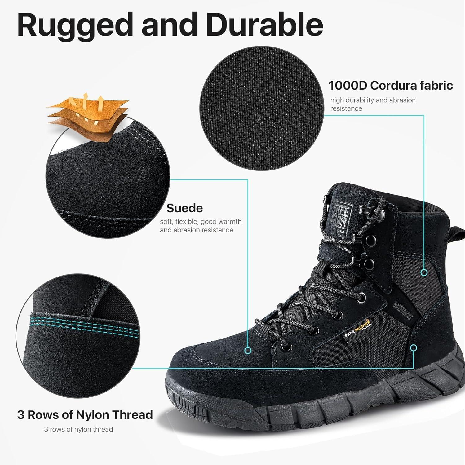 imageFREE SOLDIER Hiking Work Boots Womens Tactical Boots 6 Inches Lightweight Waterproof Military Boots Outdoors Desert BootsBlack