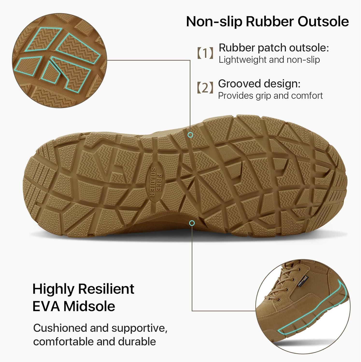imageFREE SOLDIER Hiking Work Boots Womens Tactical Boots 6 Inches Lightweight Waterproof Military Boots Outdoors Desert BootsTan