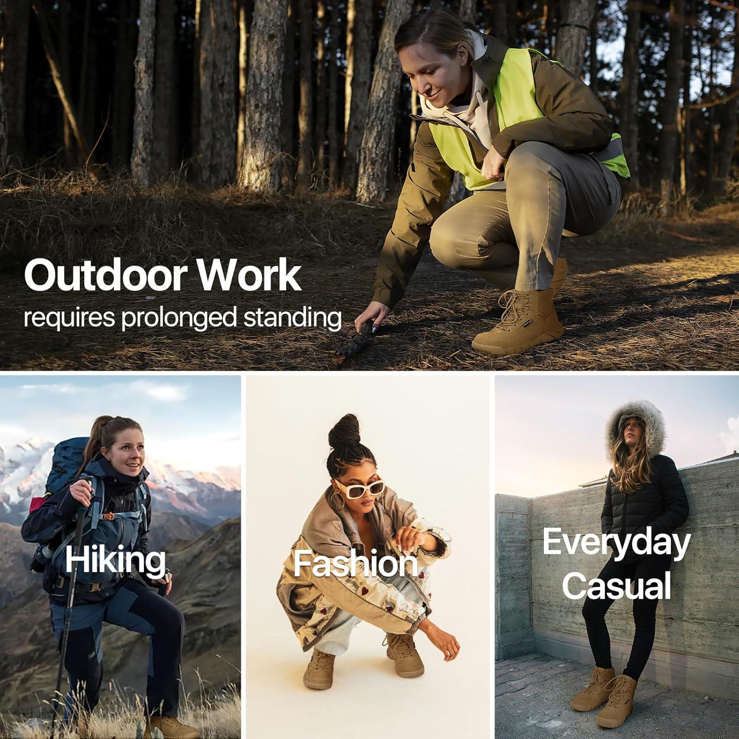 WATERPROOF & BREATHABLE : These waterproof boots for women feature a waterproof leather upper that ensures your feet stay dry in wet conditions. The waterproof sock liner effectively blocks rain and puddles, keeping your feet comfortable and dry even in the harshest weather conditions. Together with the breathable material, these tactical boots for women provide excellent air circulation to prevent moisture buildup, breathable and waterproof to keep feet fresh and comfortable all day long
