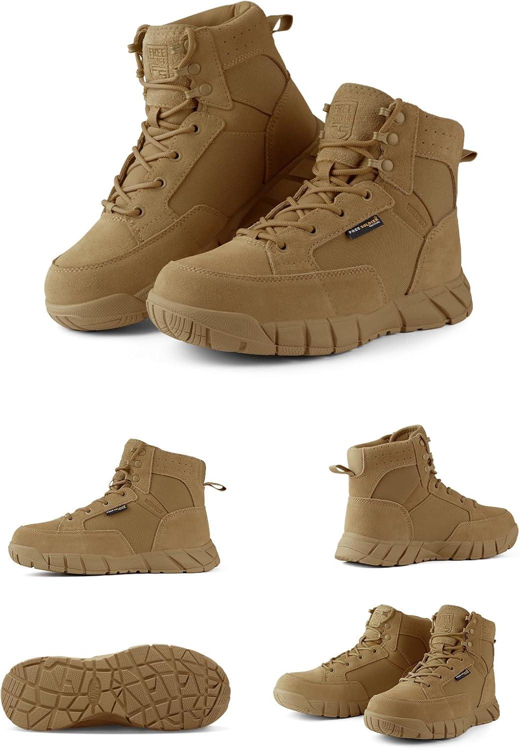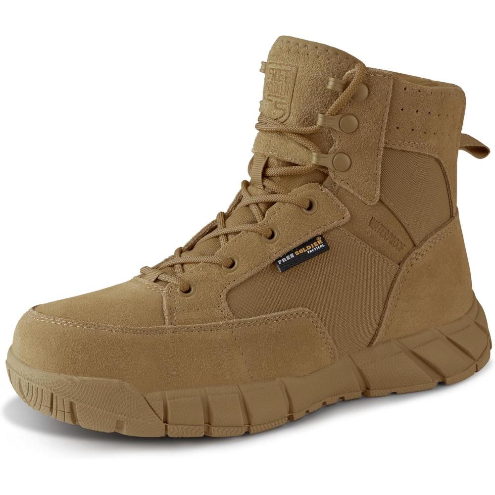 imageFREE SOLDIER Hiking Work Boots Womens Tactical Boots 6 Inches Lightweight Waterproof Military Boots Outdoors Desert BootsLight Brown