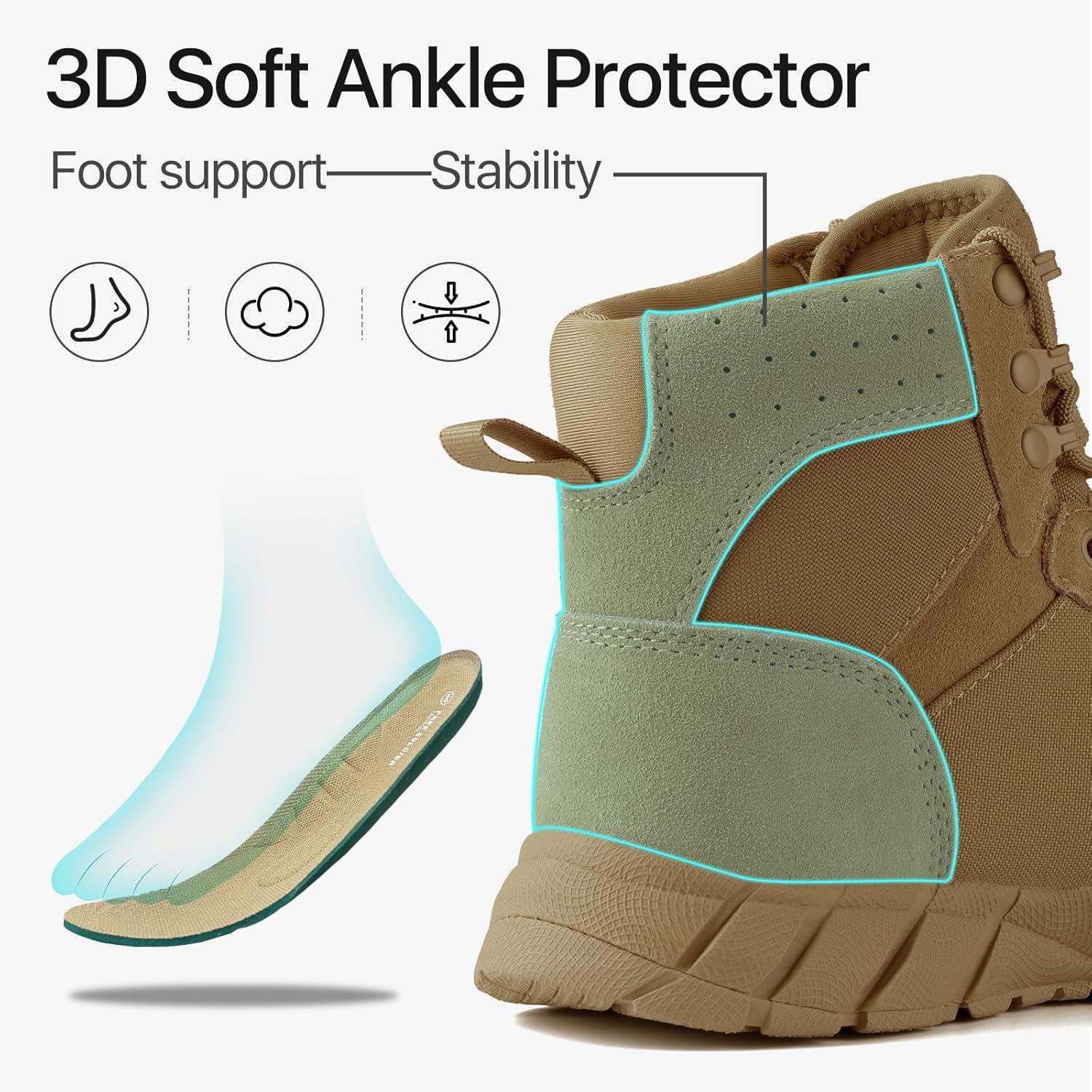 FREE SOLDIER Hiking Work Boots Women’s Tactical Boots 6 Inches Lightweight Waterproof Military Boots Outdoors Desert Boots(Tan)
