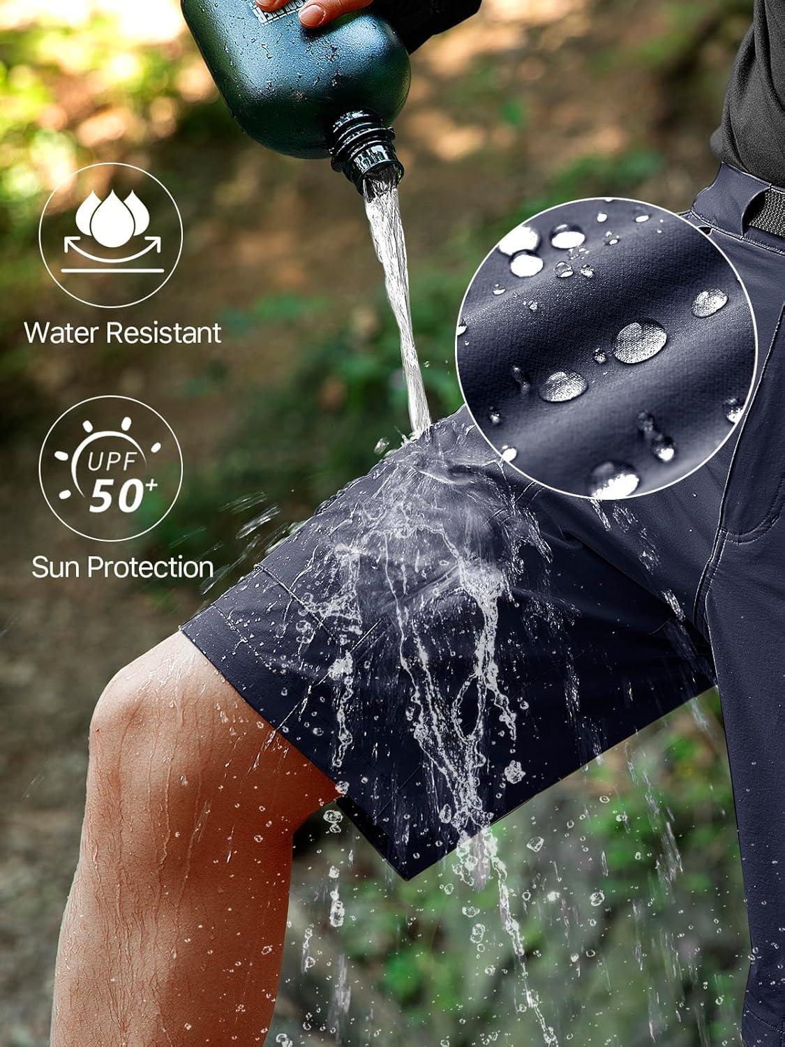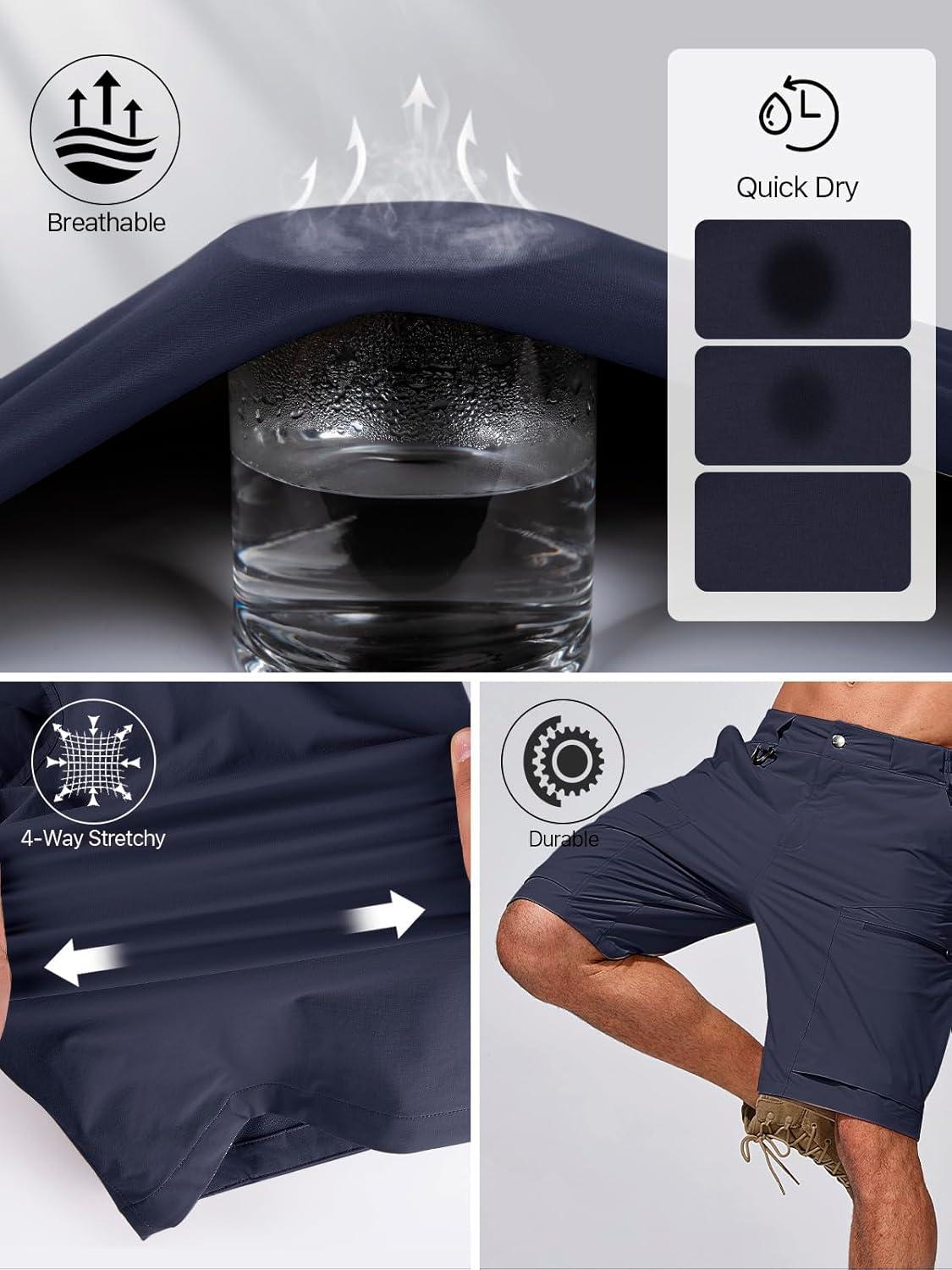 FREE SOLDIER Men’s Cargo Hiking Shorts with Belt Lightweight Quick Dry Tactical Shorts with Pockets for Casual Work Golf(Dark Blue)
