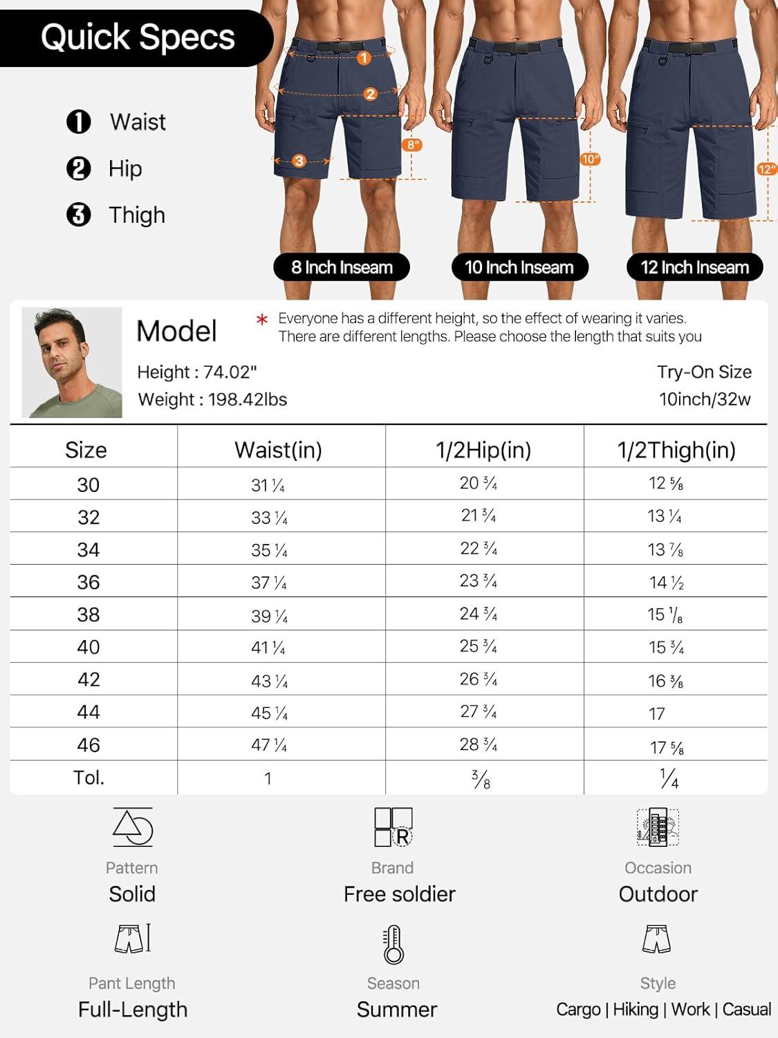 Be the first to review “FREE SOLDIER Men’s Cargo Hiking Shorts with Belt Lightweight Quick Dry Tactical Shorts with Pockets for Casual Work Golf(Dark Blue)”