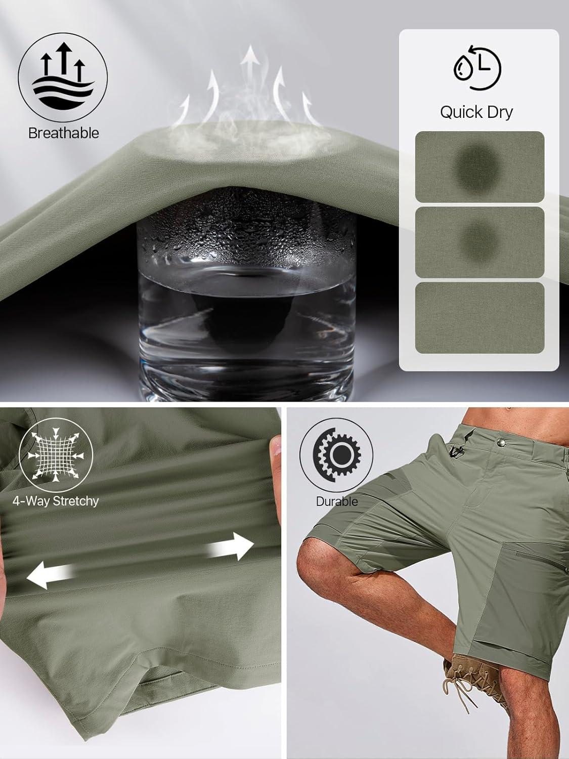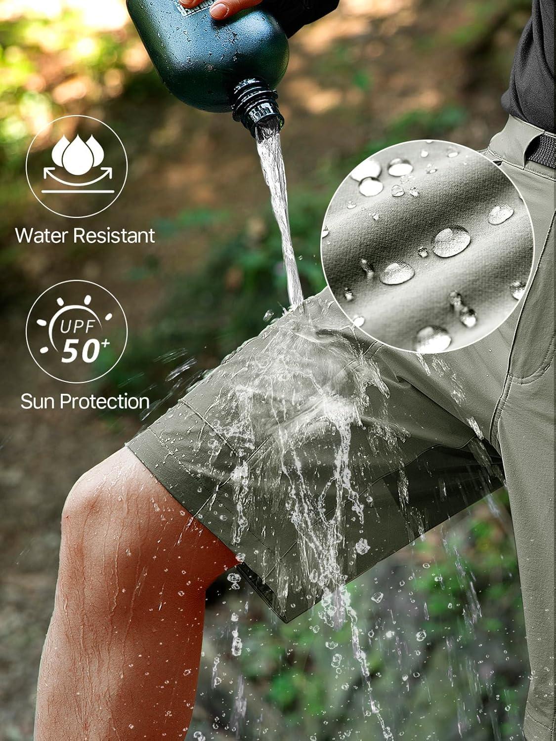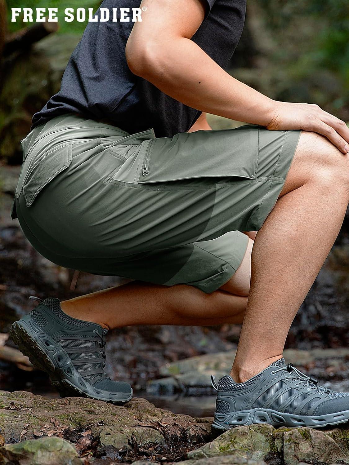 FREE SOLDIER Men’s Cargo Hiking Shorts with Belt Lightweight Quick Dry Tactical Shorts with Pockets for Casual Work Golf(Mixgray)
