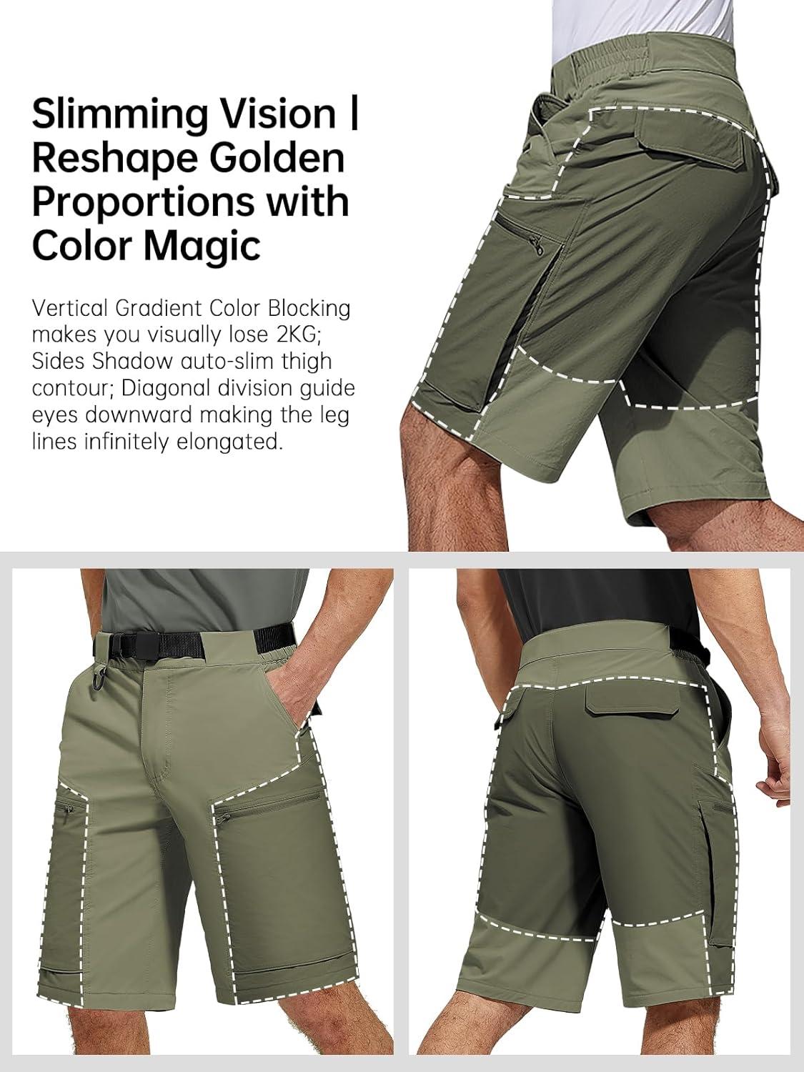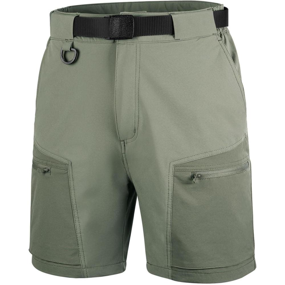 FREE SOLDIER Men's Cargo Hiking Shorts with Belt Lightweight Quick Dry Tactical Shorts with Pockets for Casual Work Golf(Mix Fir Green)