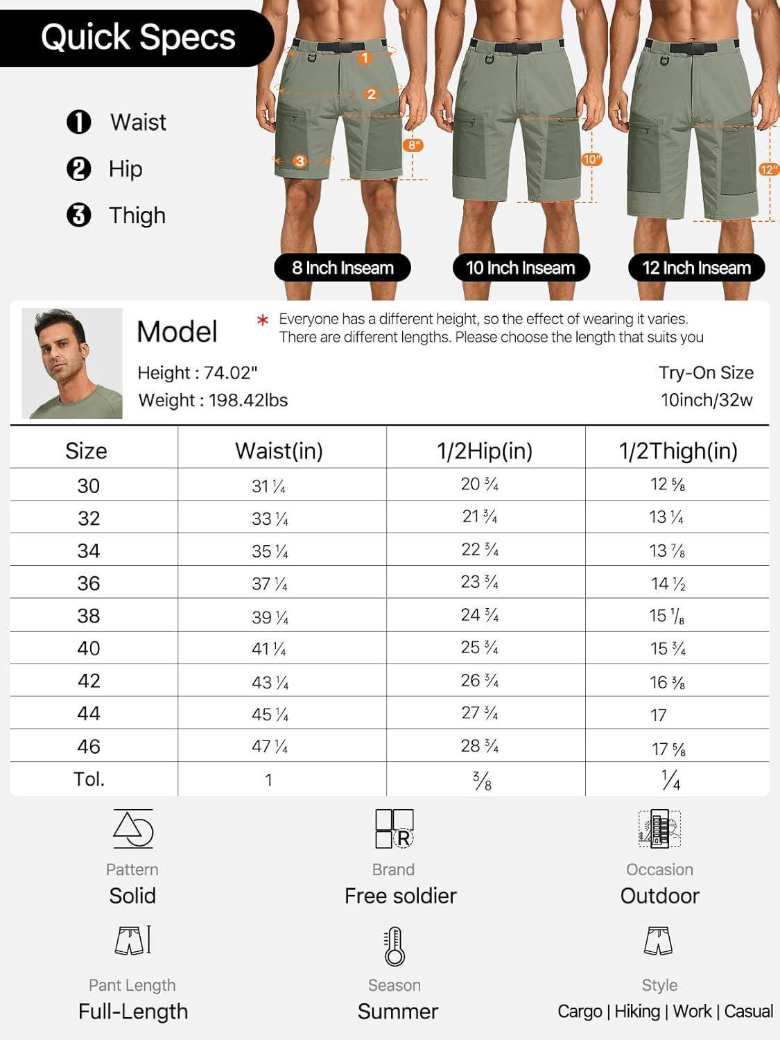 Get up to 50% off on FREE SOLDIER Men’s Cargo Hiking Shorts with Belt Lightweight Quick Dry Tactical Shorts with Pockets for Casual Work Golf(Mix Fir Green) styles during our spring sale event.