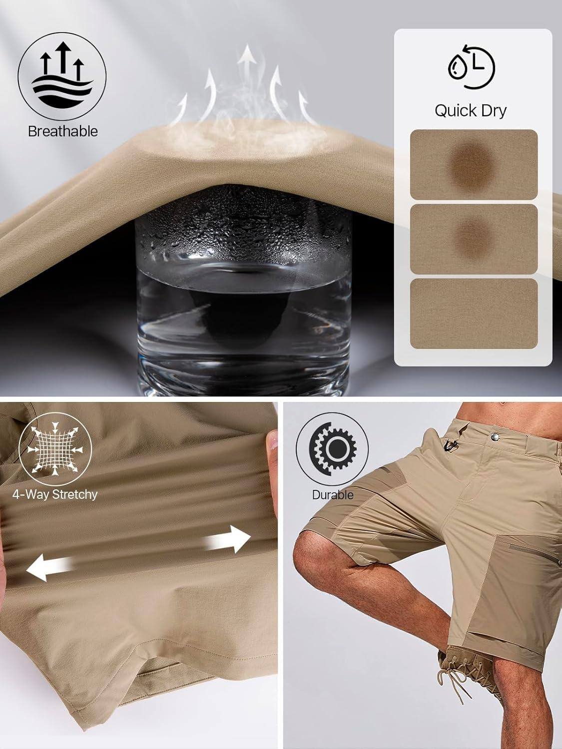 FREE SOLDIER Men’s Cargo Hiking Shorts with Belt Lightweight Quick Dry Tactical Shorts with Pockets for Casual Work Golf(Mixgray)