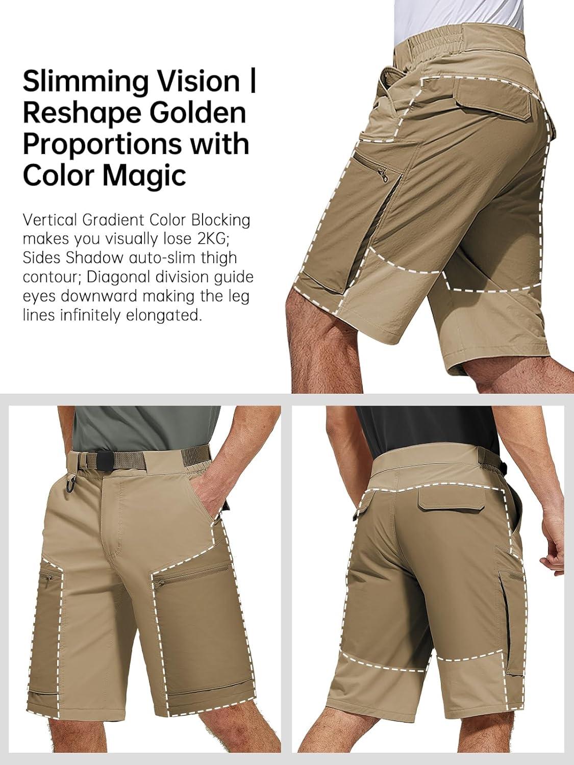 FREE SOLDIER Men’s Cargo Hiking Shorts with Belt Lightweight Quick Dry Tactical Shorts with Pockets for Casual Work Golf(Mixmud)