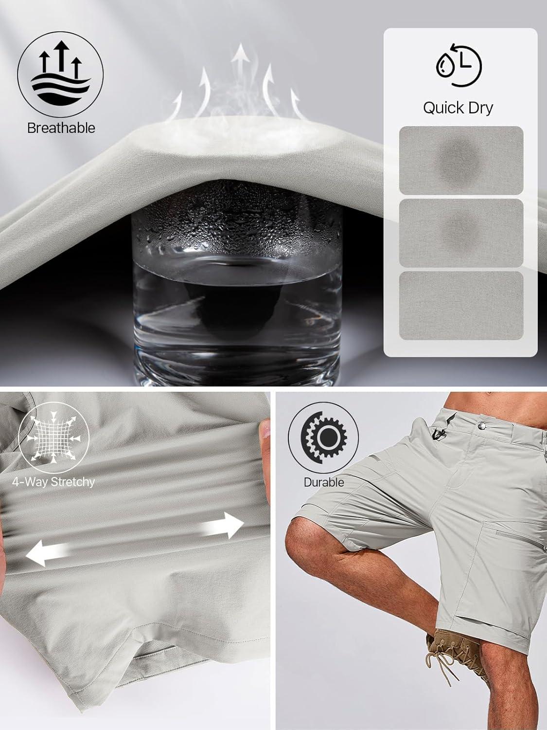 FREE SOLDIER Men’s Cargo Hiking Shorts with Belt Lightweight Quick Dry Tactical Shorts with Pockets for Casual Work Golf(Stone)