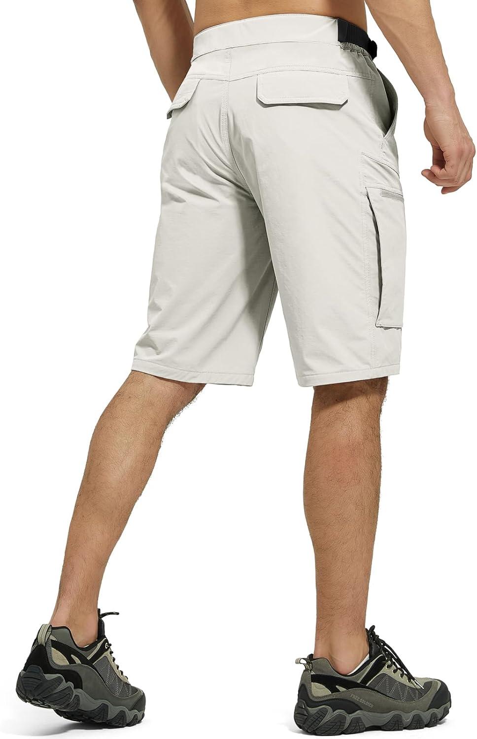 FREE SOLDIER Men's Cargo Hiking Shorts with Belt Lightweight Quick Dry Tactical Shorts with Pockets for Casual Work Golf(Stone)