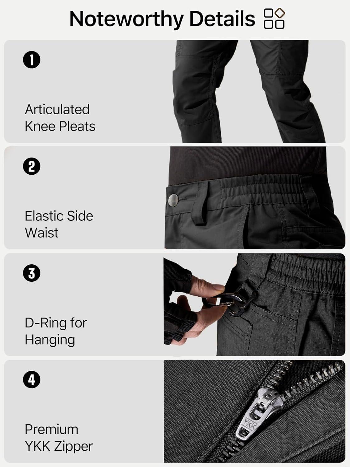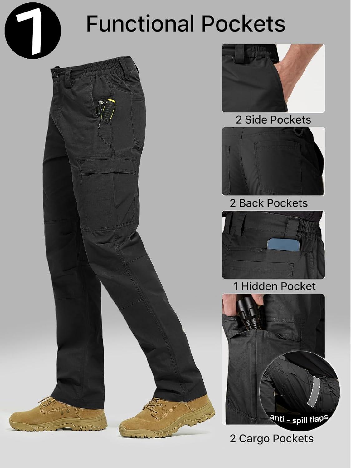 FREE SOLDIER Men's Cargo Pants Water Resistant Ripstop Tactical Pants for Men Work Pants Lightweight Outdoor Hiking Pants Men(Classic Black)