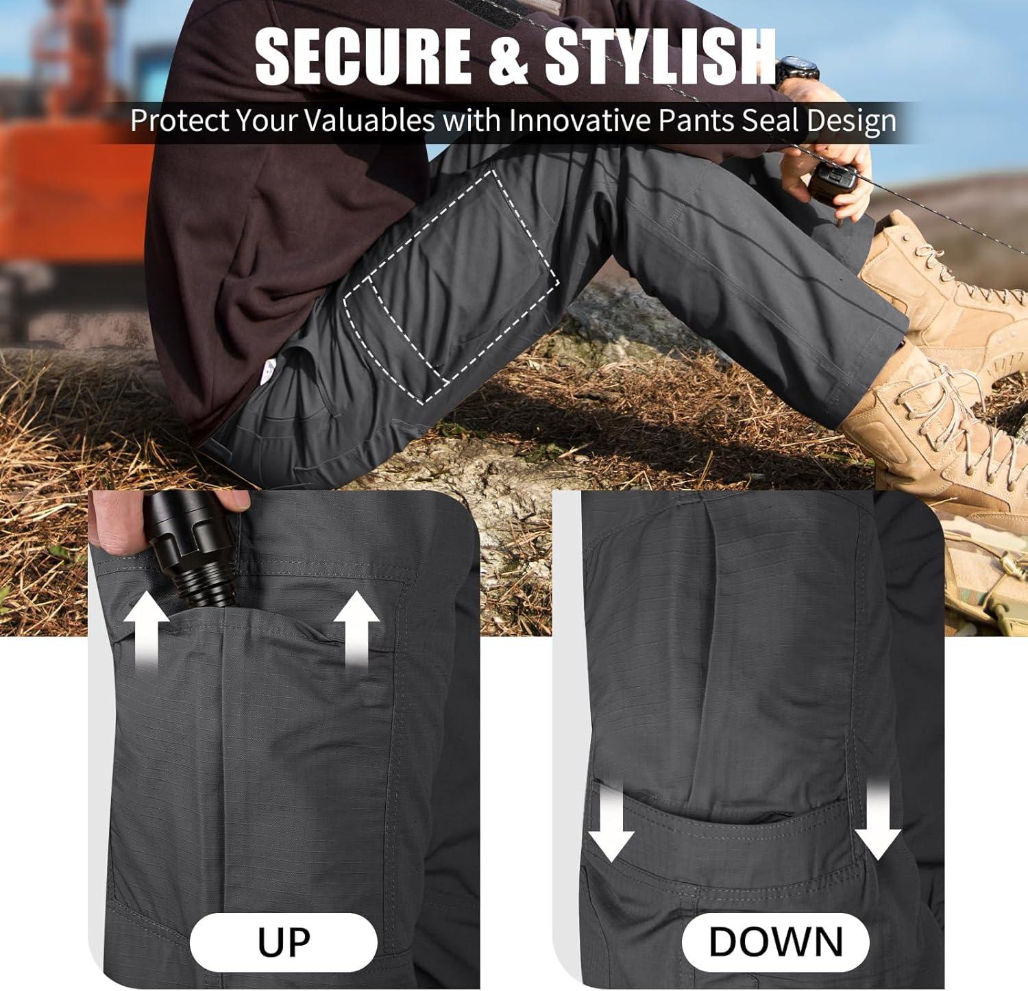 FREE SOLDIER Men's Cargo Pants Water Resistant Ripstop Tactical Pants for Men Work Pants Lightweight Outdoor Hiking Pants Men(Classic Gray)