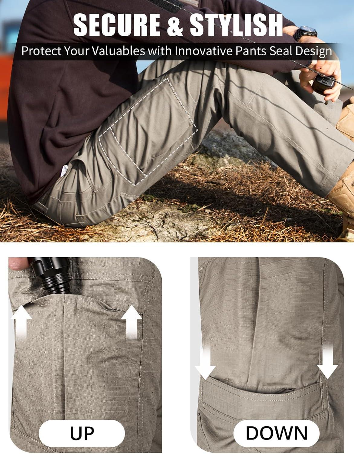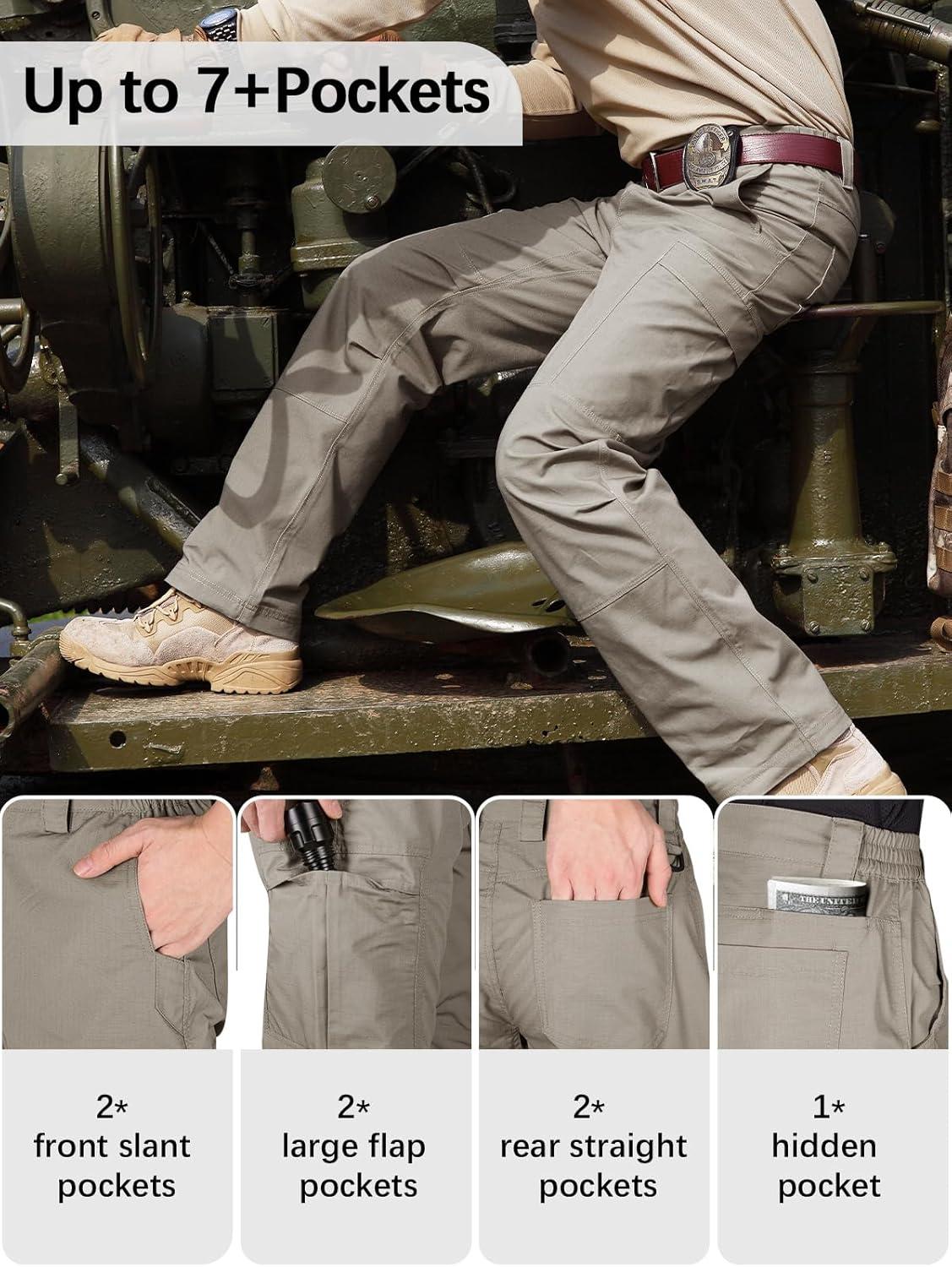 FREE SOLDIER Men's Cargo Pants Water Resistant Ripstop Tactical Pants for Men Work Pants Lightweight Outdoor Hiking Pants Men(Classic Khaki)