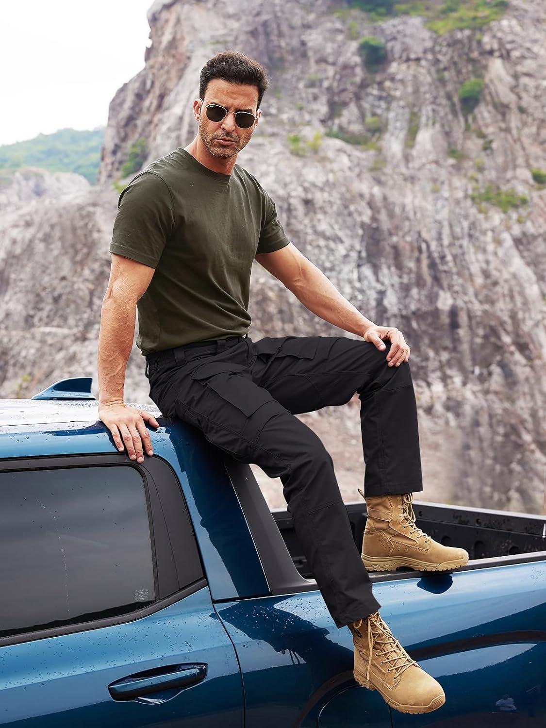 [Detail Upgrades] These mens cargo pants have been carefully designed with upgraded details, especially in the waist area. The elastic waist design, paired with a widened waist belt loop, provides additional comfort for the wearer.Strengthened knees part and 3D tailoring, make these mens tactical pants wear-resisting and flexibility
