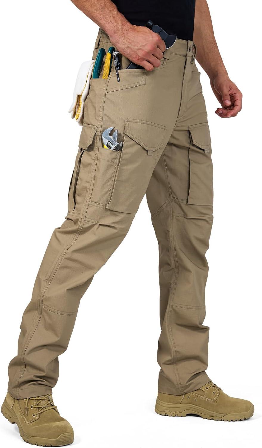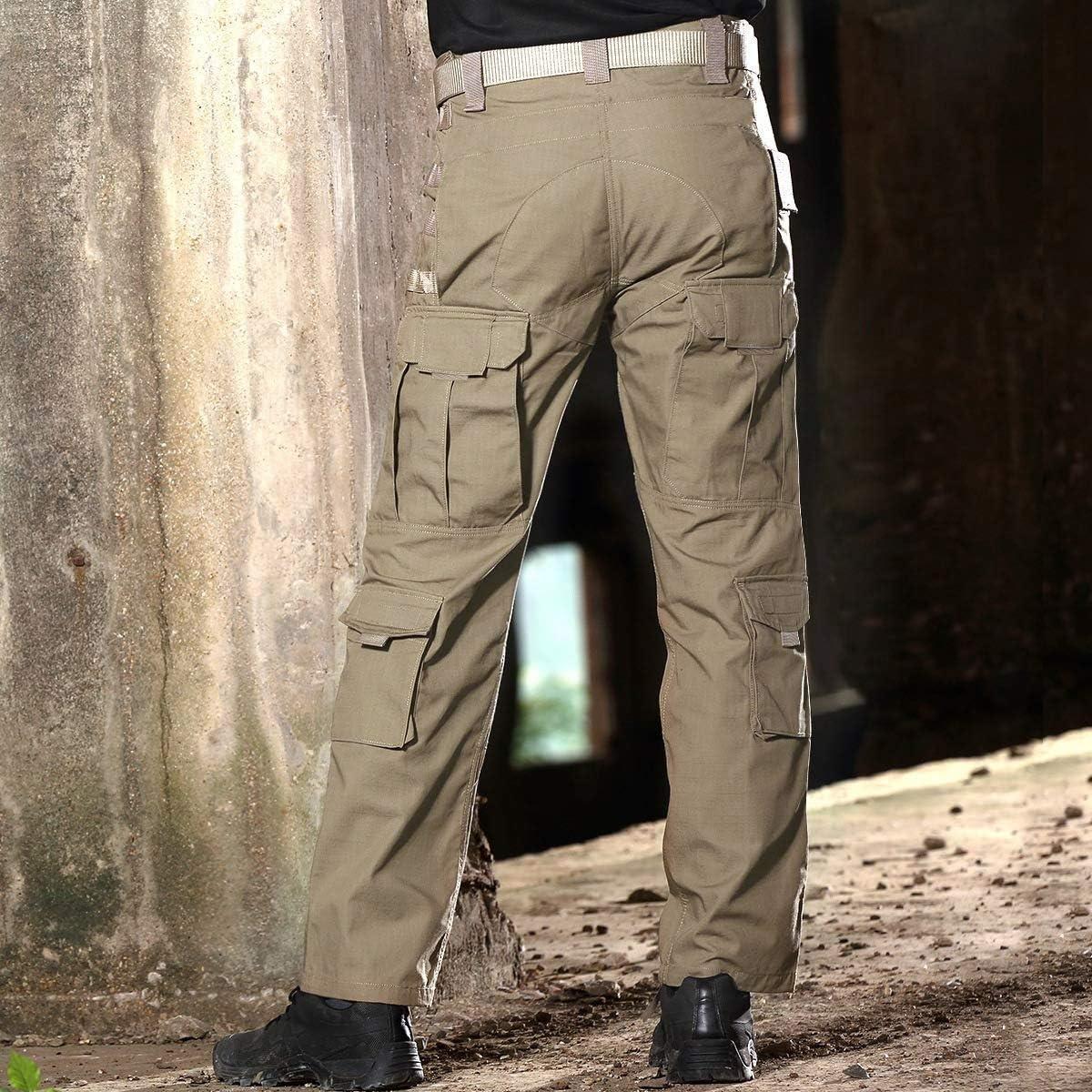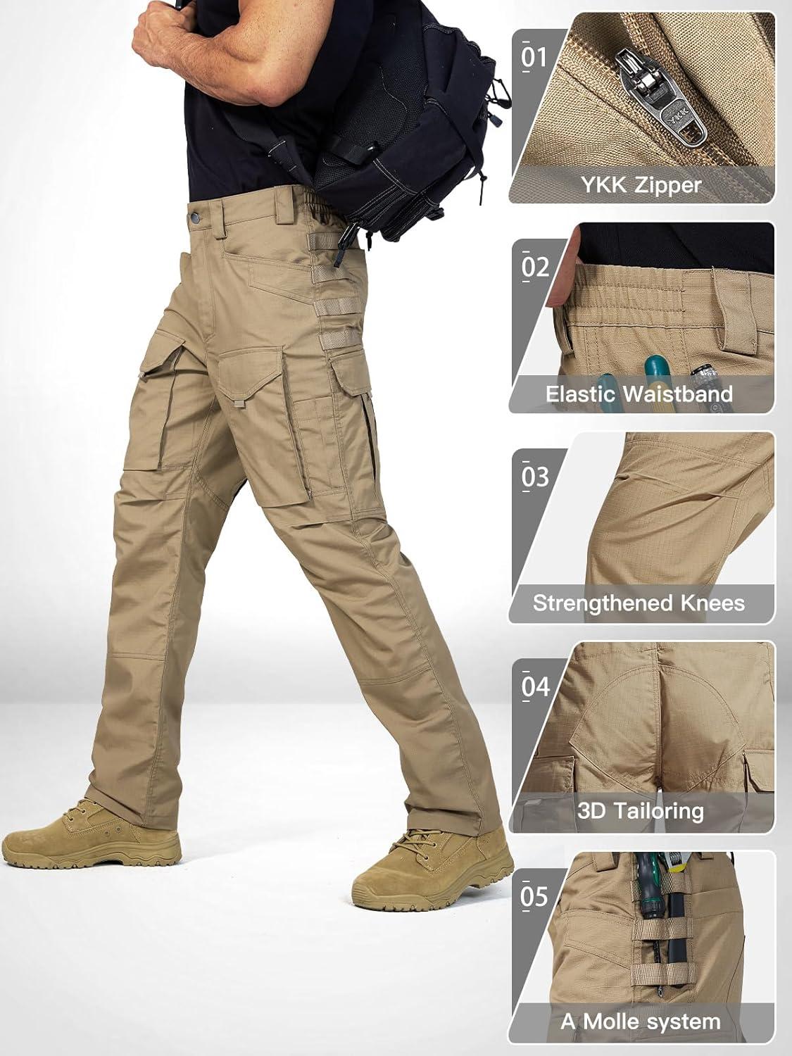 [Detail Upgrades] These mens cargo pants have been carefully designed with upgraded details, especially in the waist area. The elastic waist design, paired with a widened waist belt loop, provides additional comfort for the wearer.Strengthened knees part and 3D tailoring, make these mens tactical pants wear-resisting and flexibility