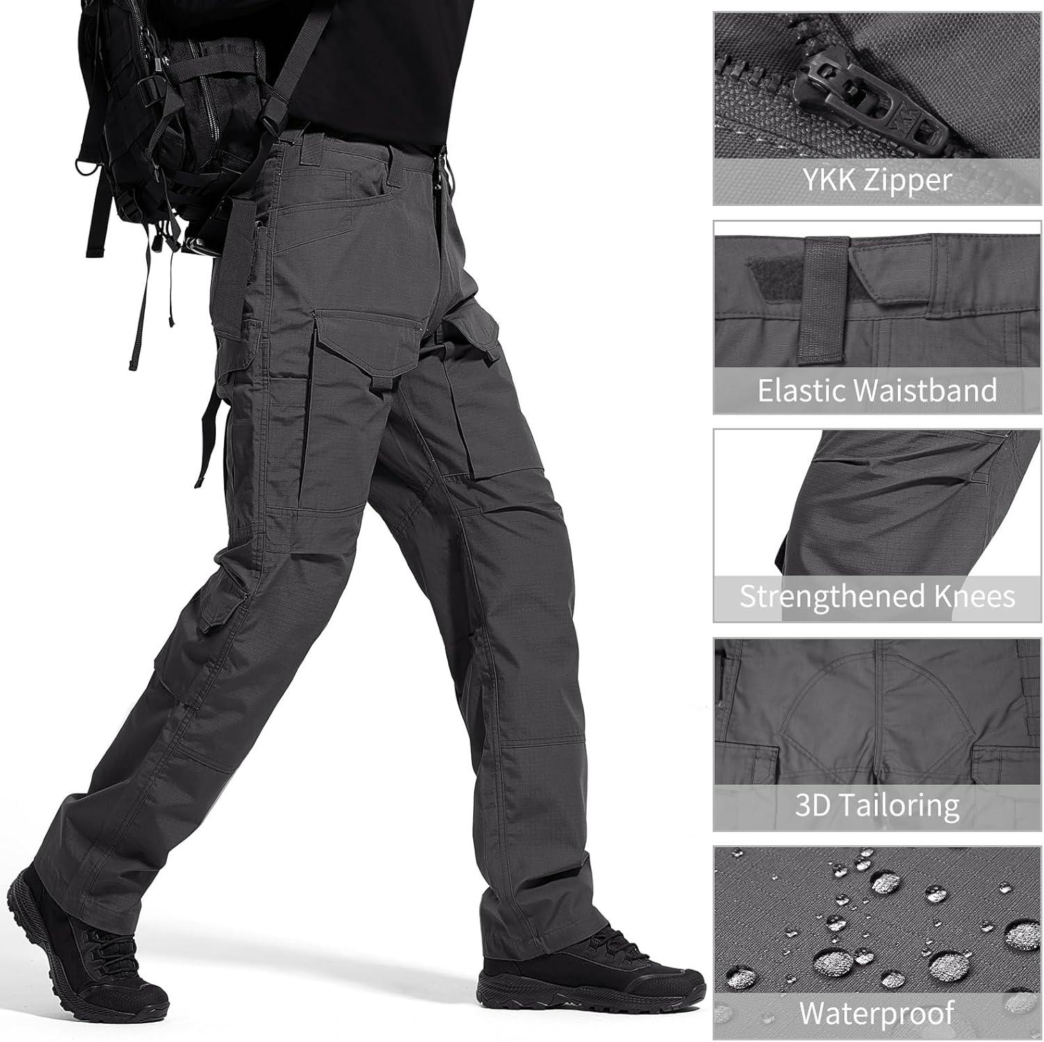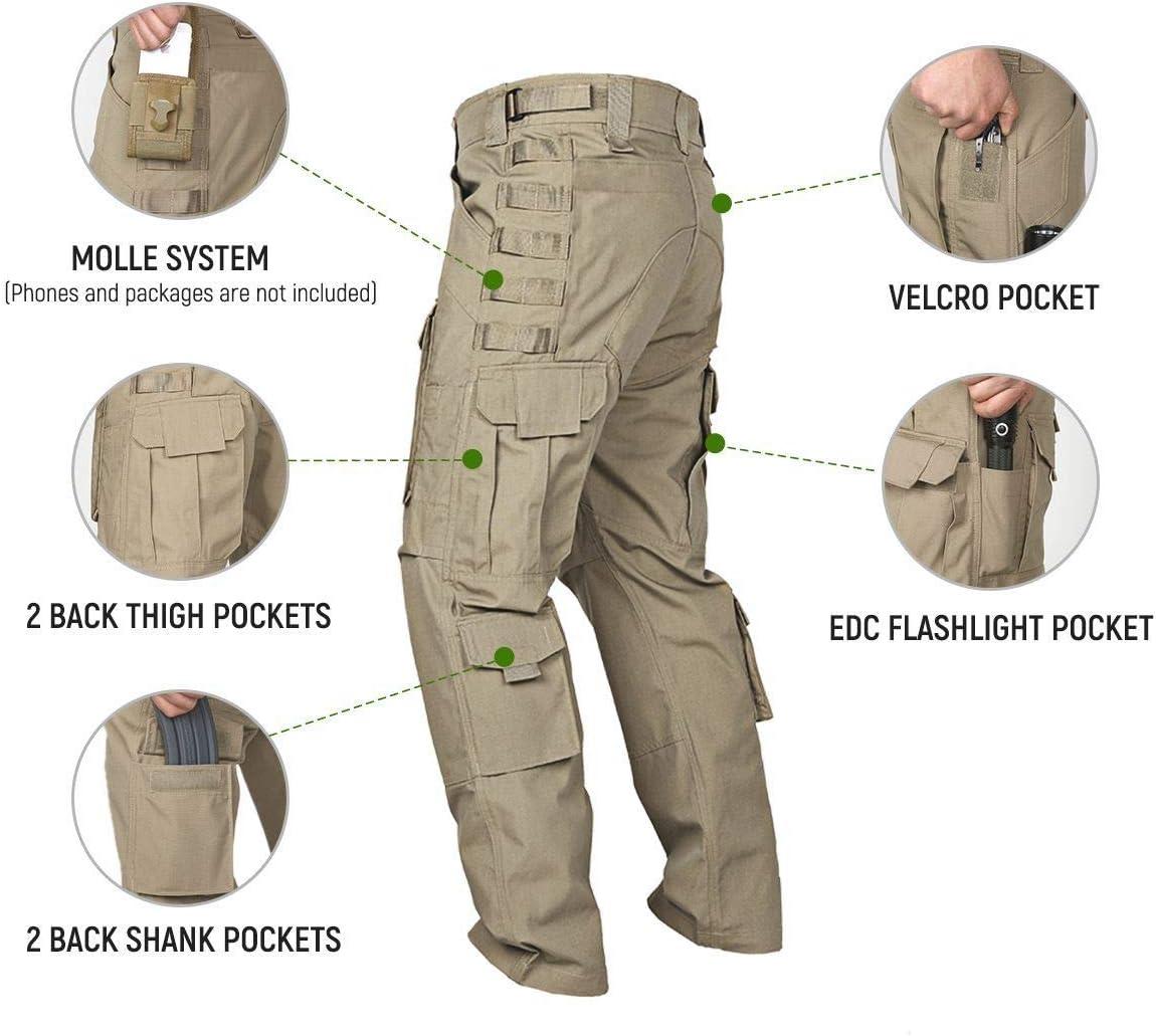[Detail Upgrades] These mens cargo pants have been carefully designed with upgraded details, especially in the waist area. The elastic waist design, paired with a widened waist belt loop, provides additional comfort for the wearer.Strengthened knees part and 3D tailoring, make these mens tactical pants wear-resisting and flexibility