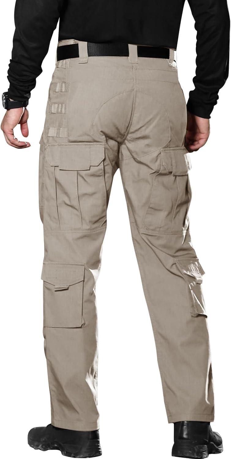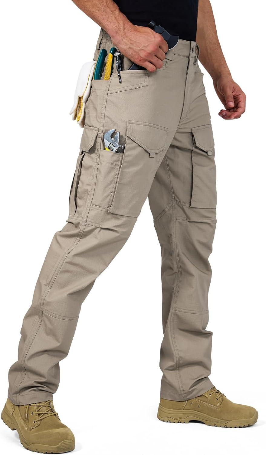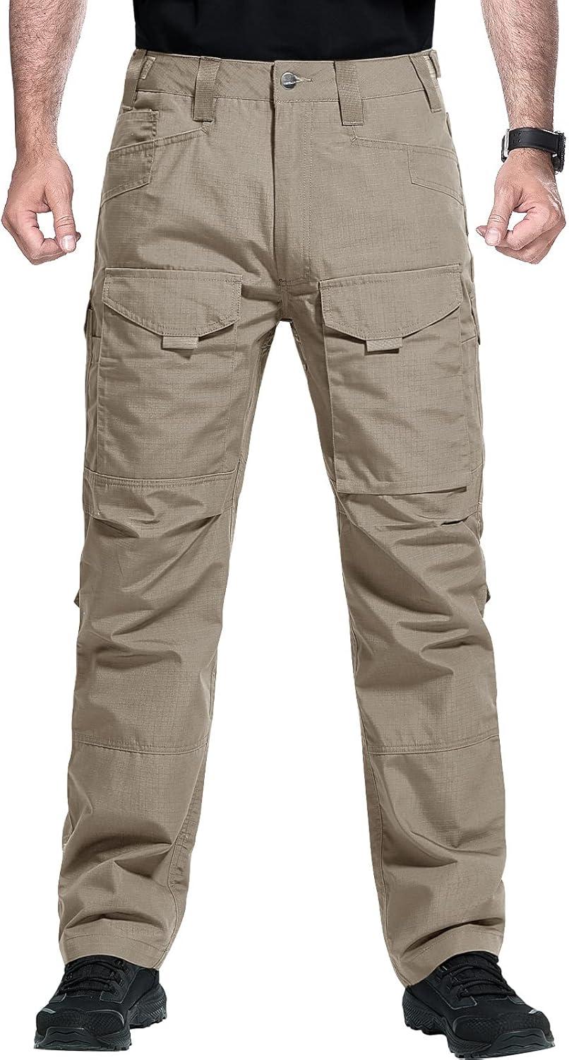 FREE SOLDIER Men’s Cargo Pants,Tactical Pants for Men Stretch,Durable Ripstop EDC Work Pants for Hiking(Khaki)