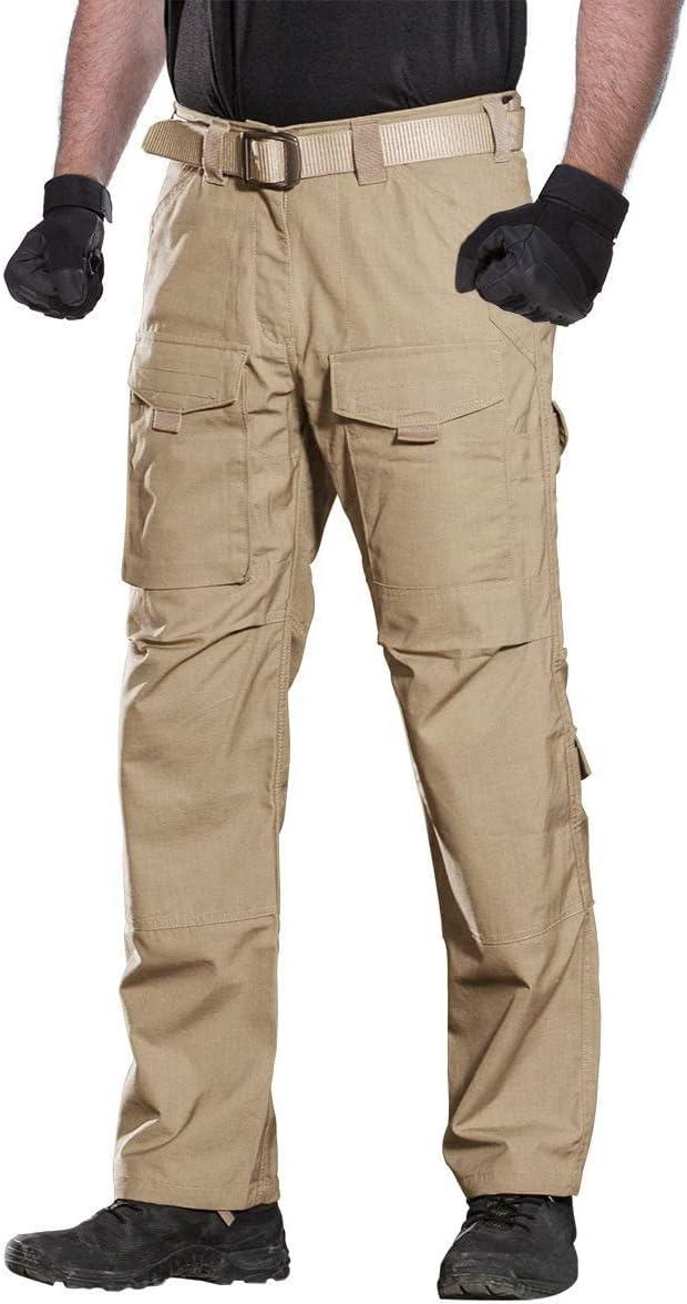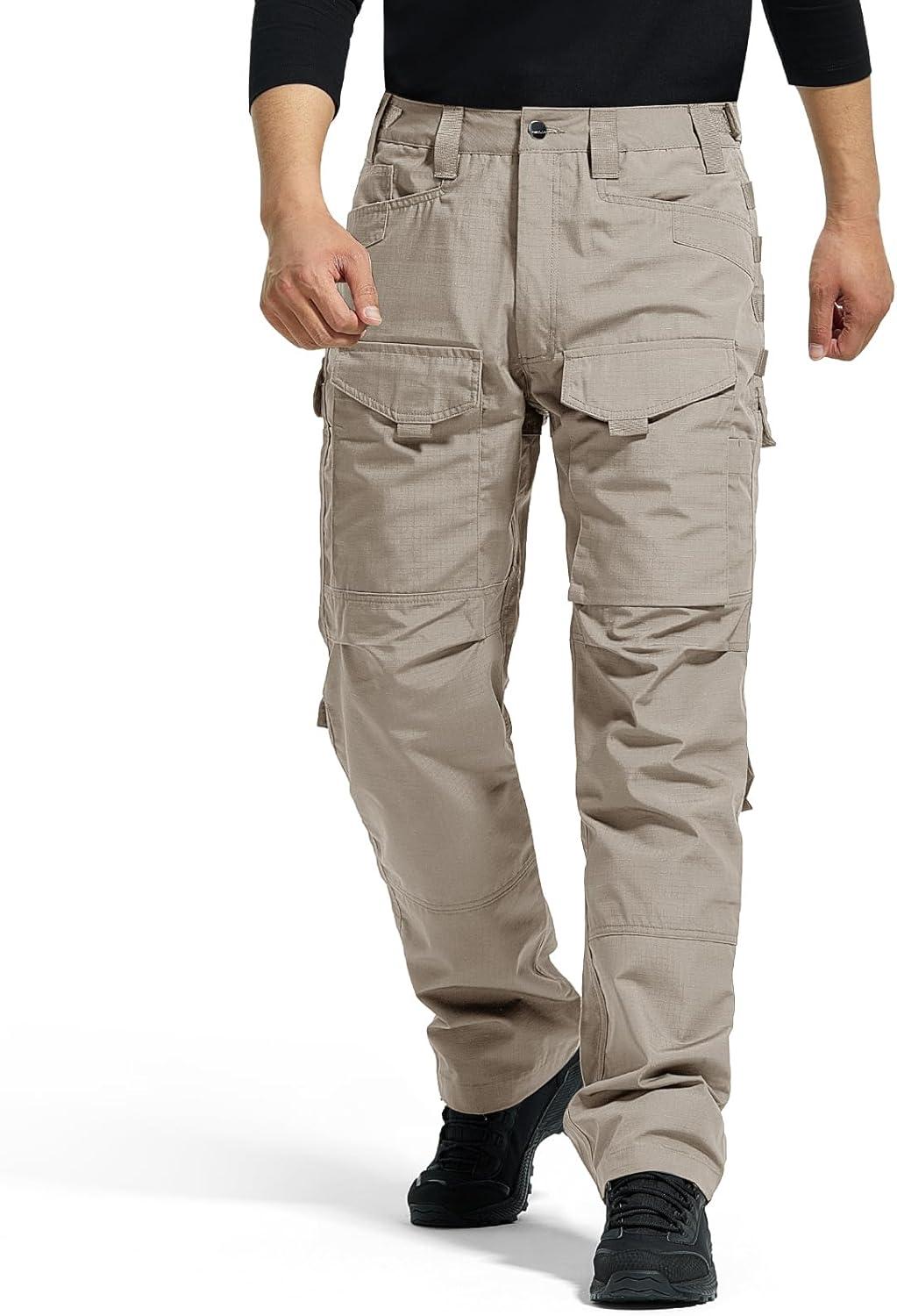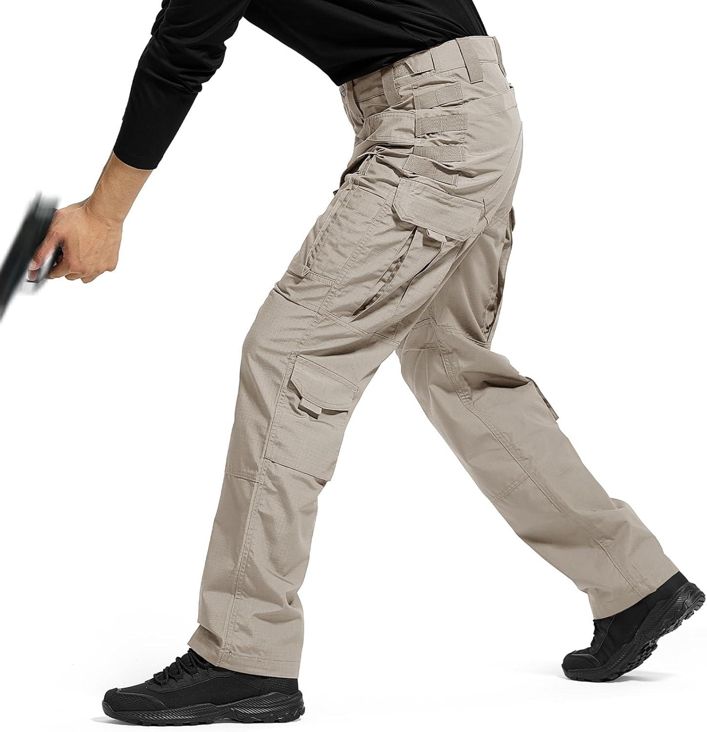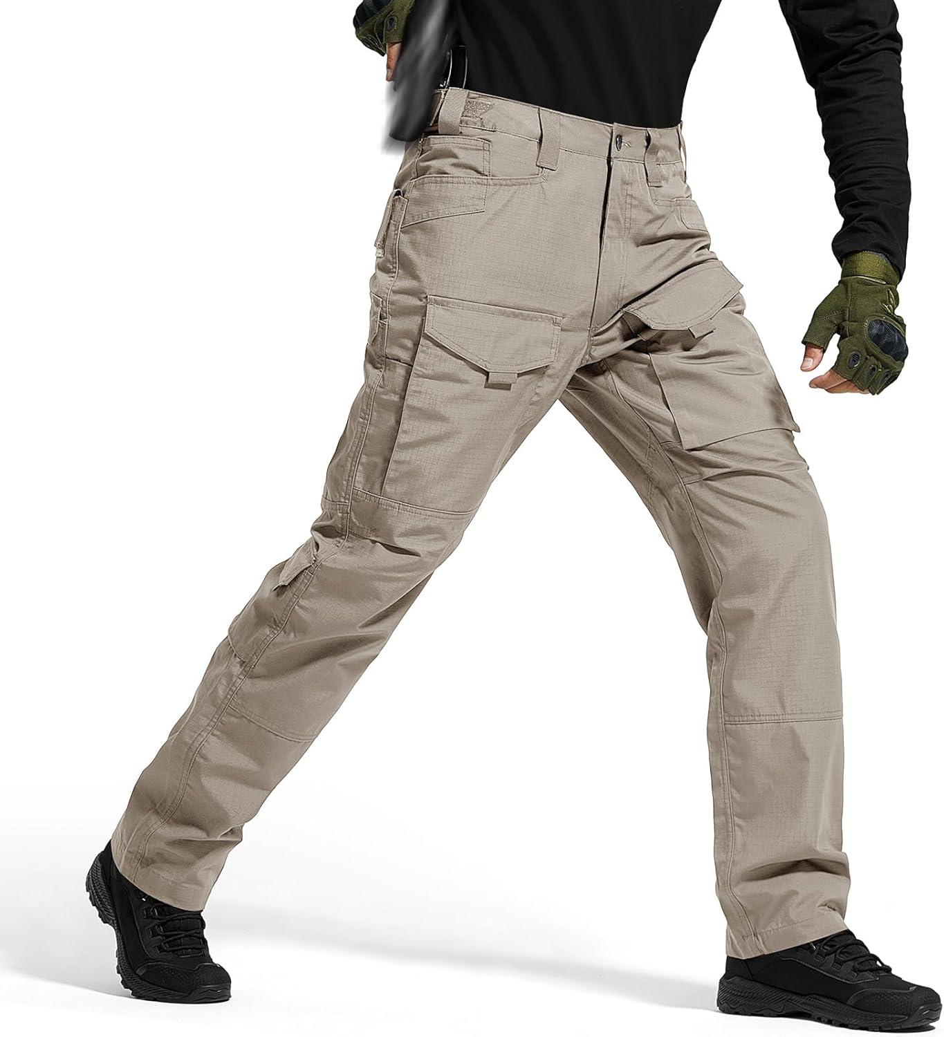 FREE SOLDIER Men’s Cargo Pants,Tactical Pants for Men Stretch,Durable Ripstop EDC Work Pants for Hiking(Khaki)