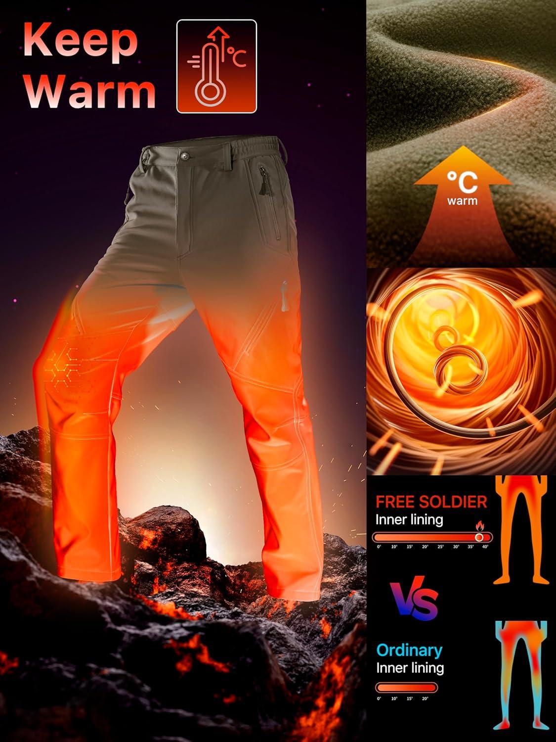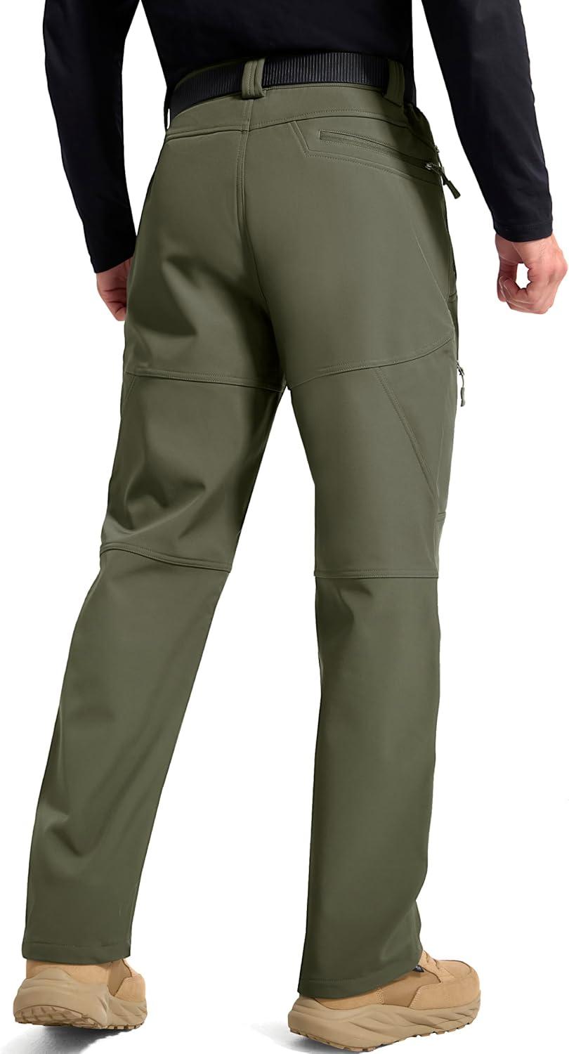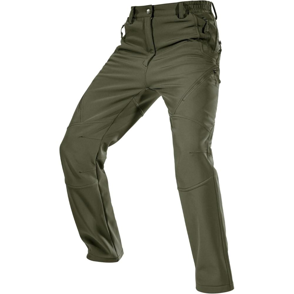 FREE SOLDIER Men’s Fleece Lined Outdoor Cargo Hiking Pants Water Repellent Softshell Snow Ski Pants with Zipper Pockets(Army Green)