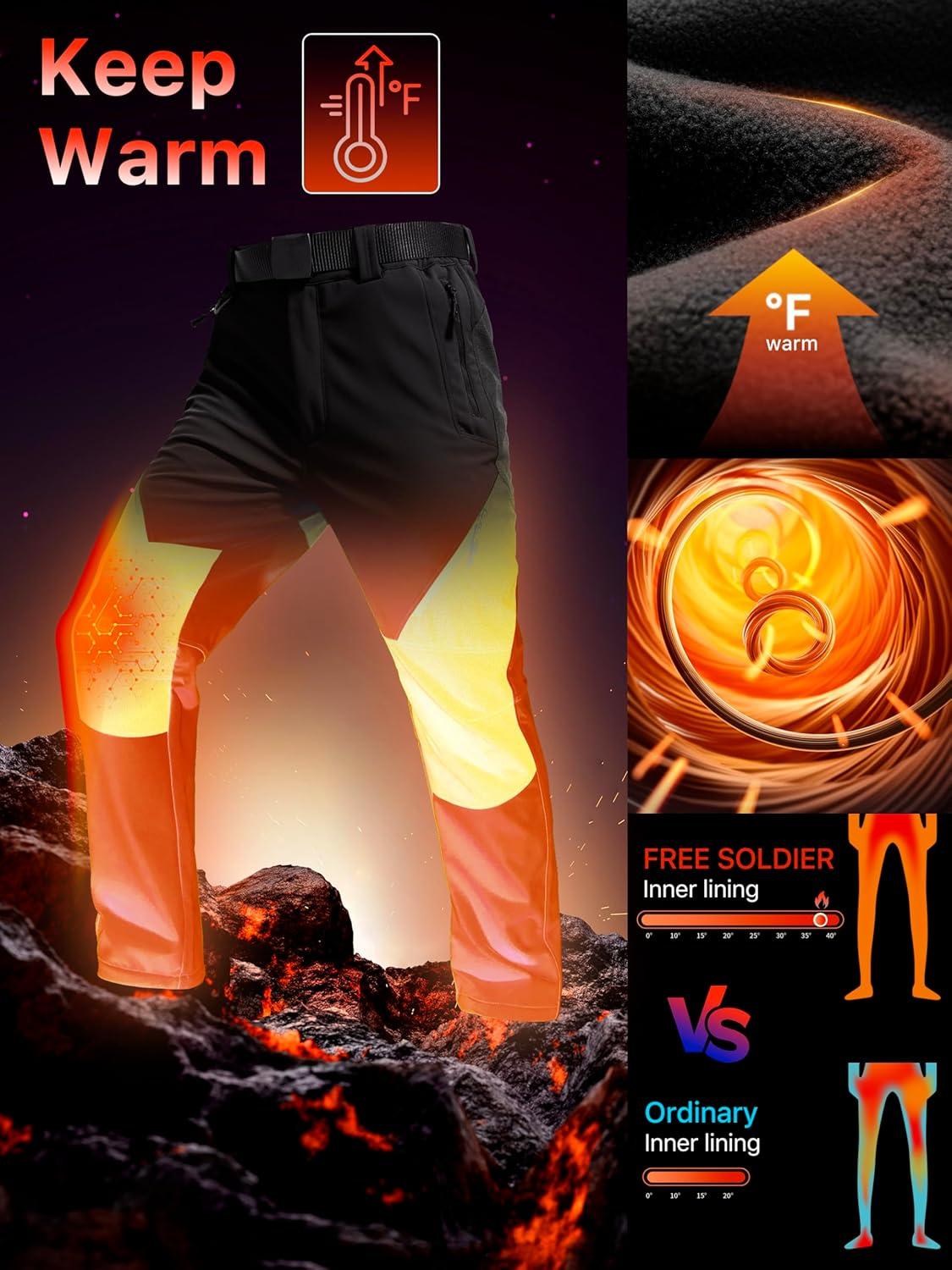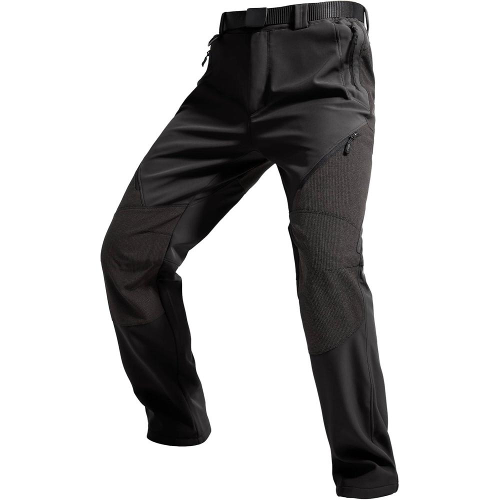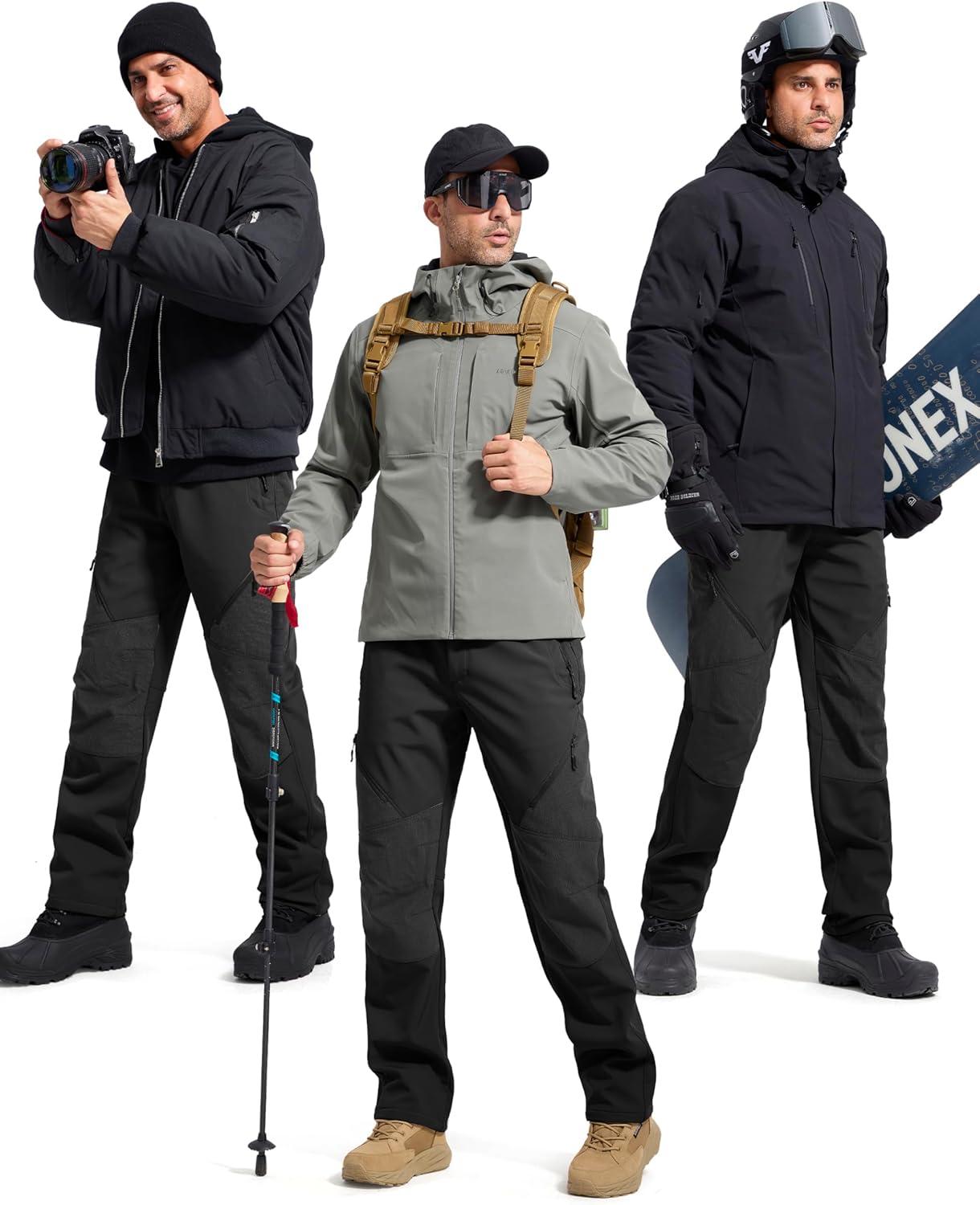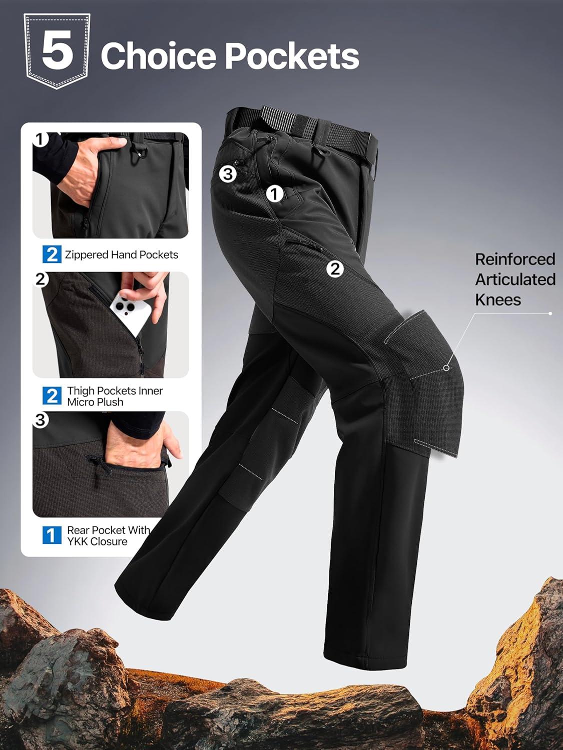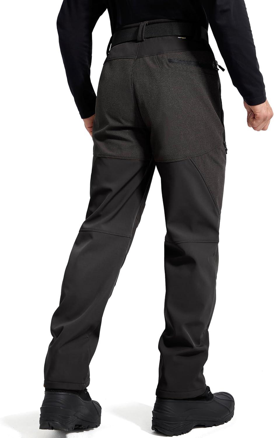 FREE SOLDIER Men’s Fleece Lined Outdoor Cargo Hiking Pants Water Repellent Softshell Snow Ski Pants with Zipper Pockets(Graphite Black)