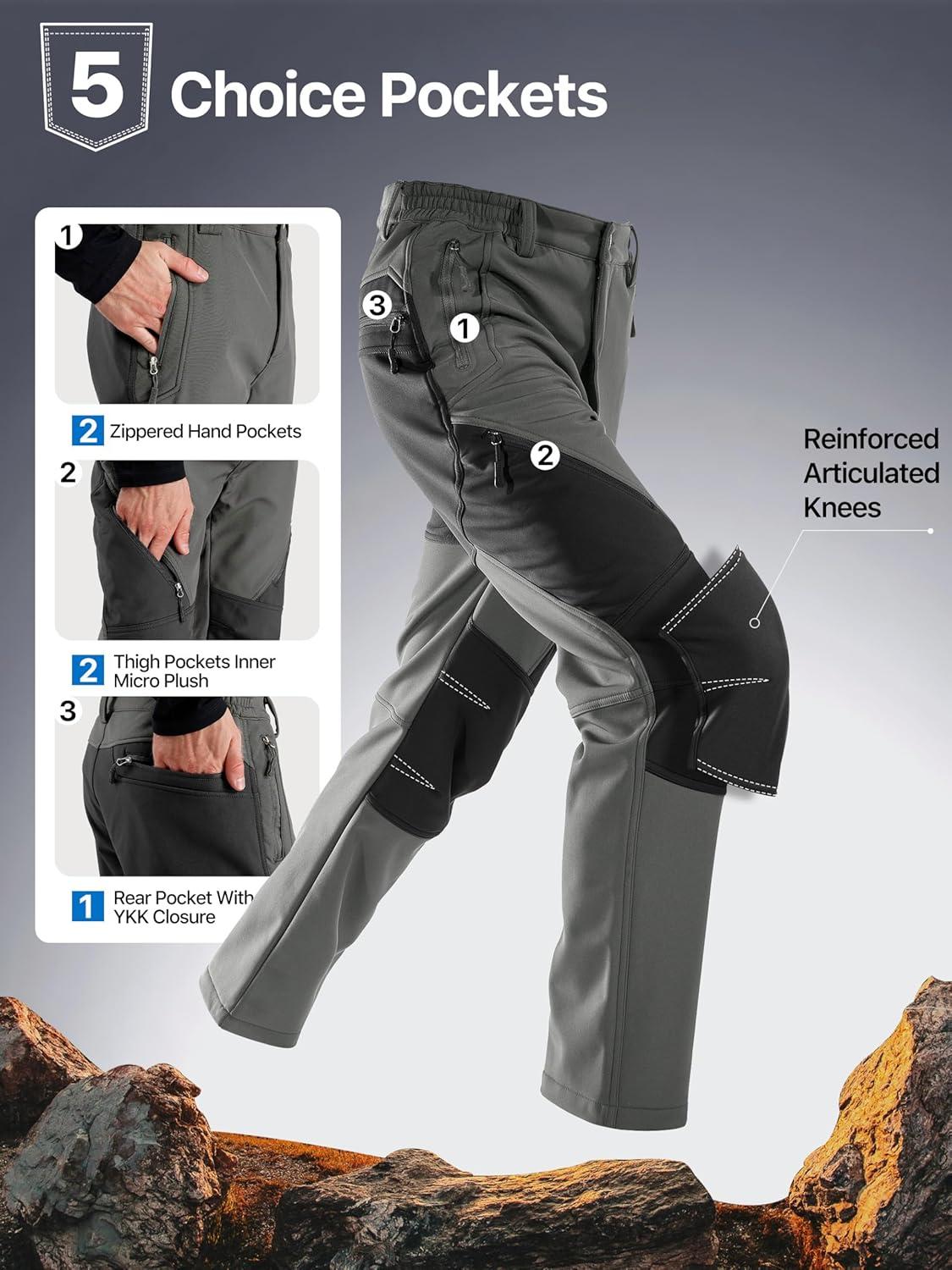 Our clearance section features the best deals on FREE SOLDIER Men’s Fleece Lined Outdoor Cargo Hiking Pants Water Repellent Softshell Snow Ski Pants with Zipper Pockets(Gray Black) and accessories. Check it out now!