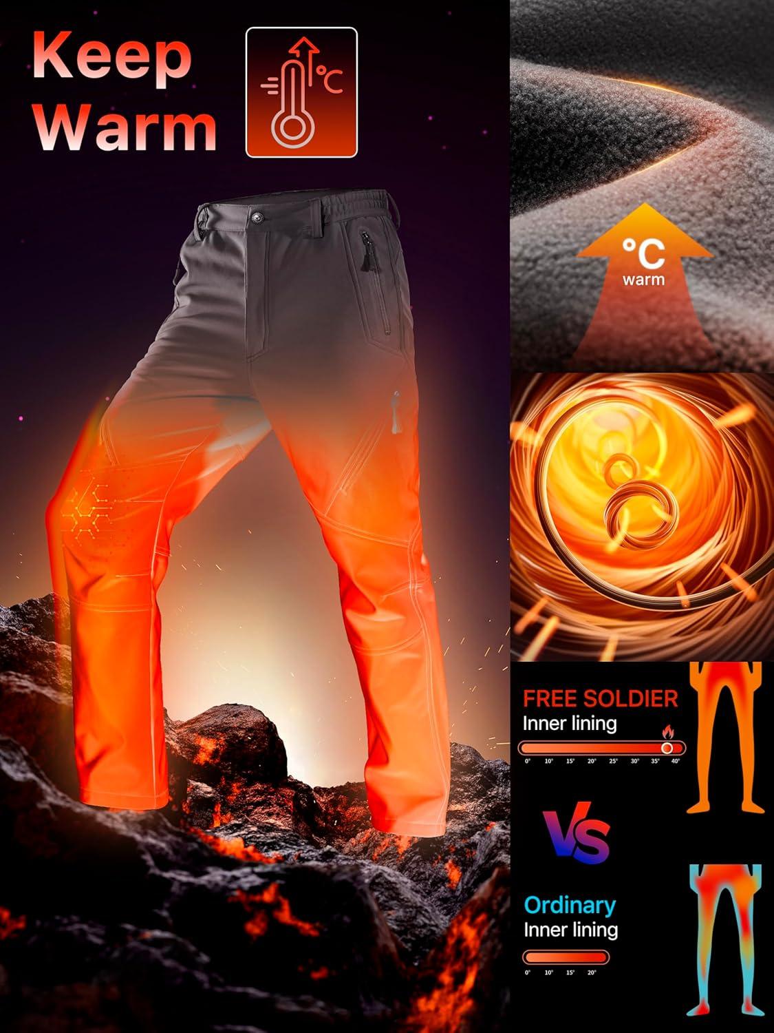 Don’t miss out on our limited-time offer: buy FREE SOLDIER Men’s Fleece Lined Outdoor Cargo Hiking Pants Water Repellent Softshell Snow Ski Pants with Zipper Pockets(Gray), get {accessory} 50% off!
