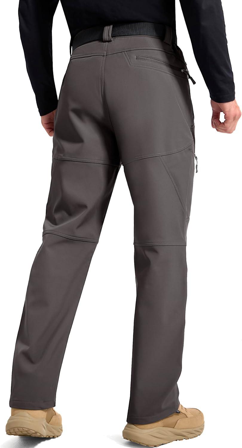 FREE SOLDIER Men’s Fleece Lined Outdoor Cargo Hiking Pants Water Repellent Softshell Snow Ski Pants with Zipper Pockets(Gray)
