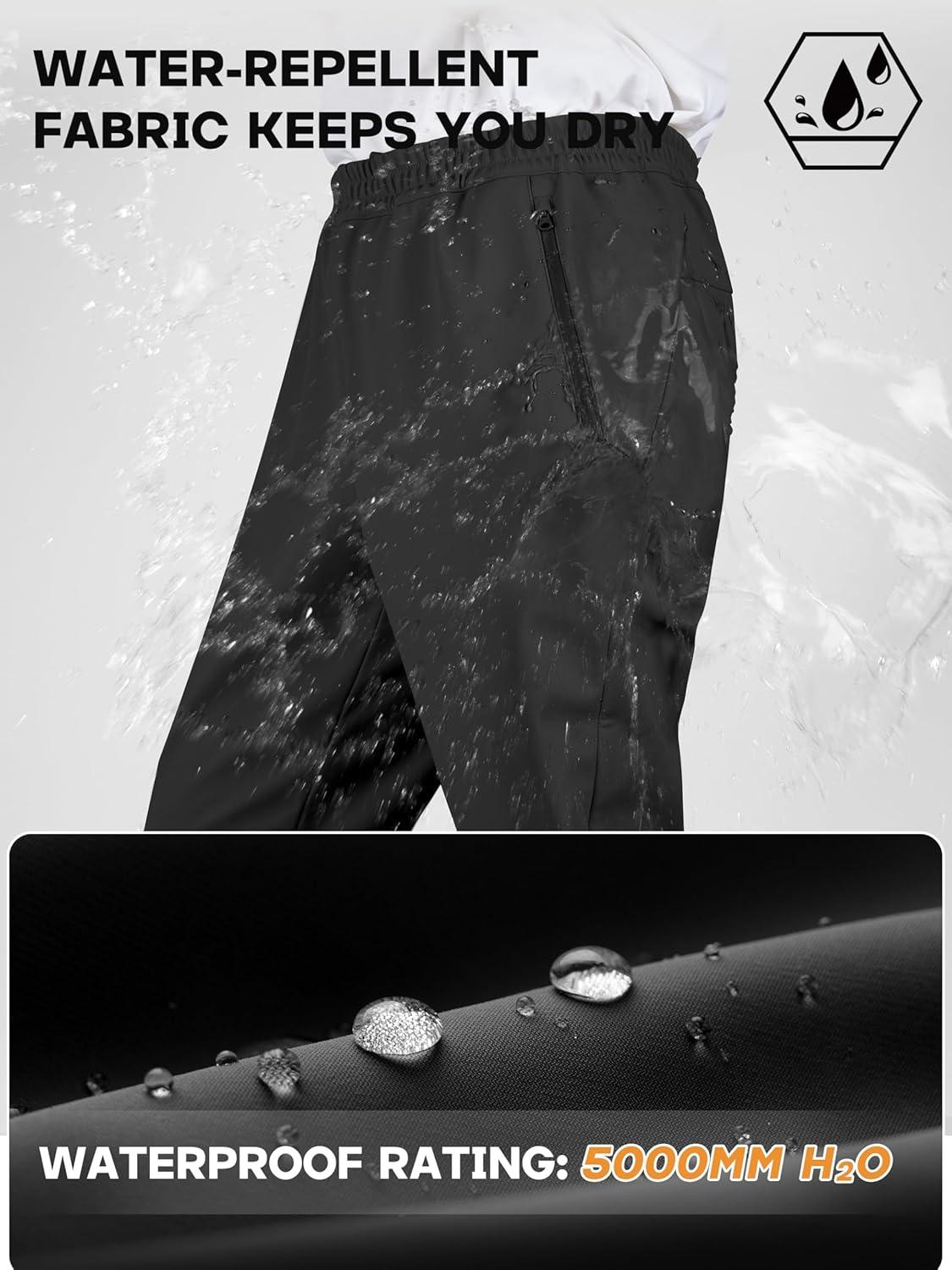 Waterproof & Windproof: The mens athletic pants feature a durable waterproof coating on the outer layer, providing protection against rain, snow, wind, and moisture while maintaining excellent breathability to keep you cool and dry during activities. These wrinkle-resistant, colorfast track pants are lined with high-quality composite fleece that effectively traps heat and offers a soft touch against the skin. With windproof and waterproof properties, they are perfect for outdoor sports