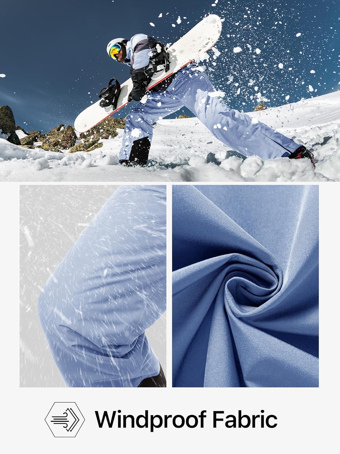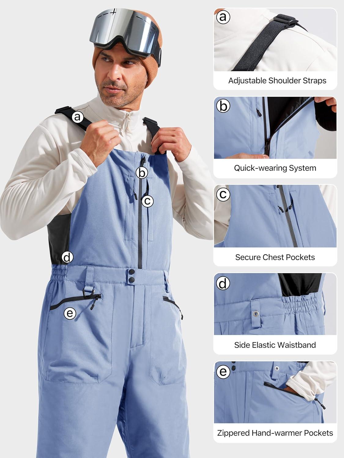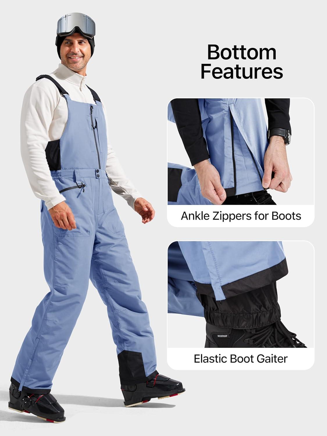 FREE SOLDIER Men’s Insulated Waterproof Snow Bibs Ski Overalls(Titanium Blue)