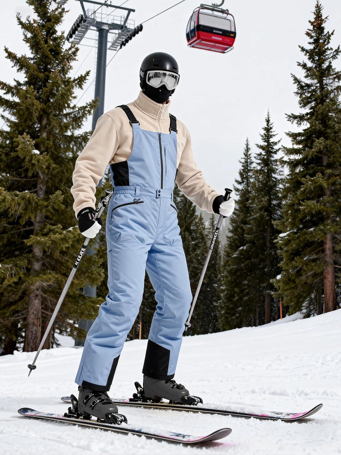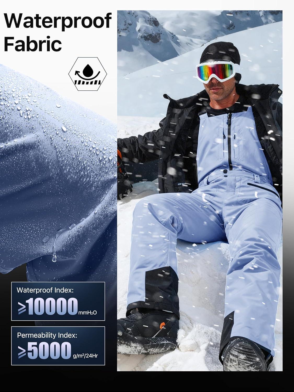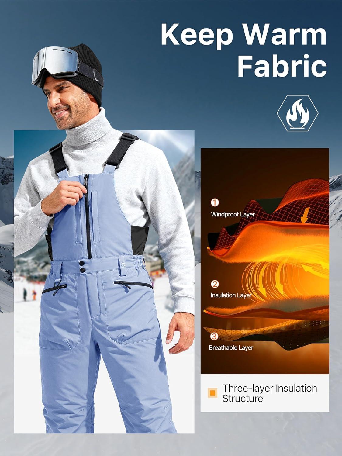 FREE SOLDIER Men’s Insulated Waterproof Snow Bibs Ski Overalls(Titanium Blue)