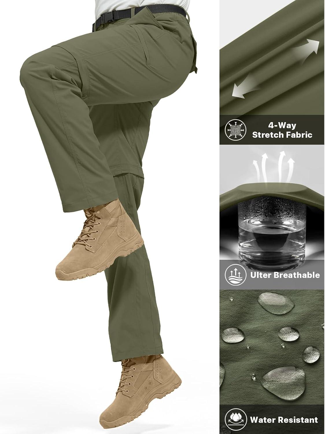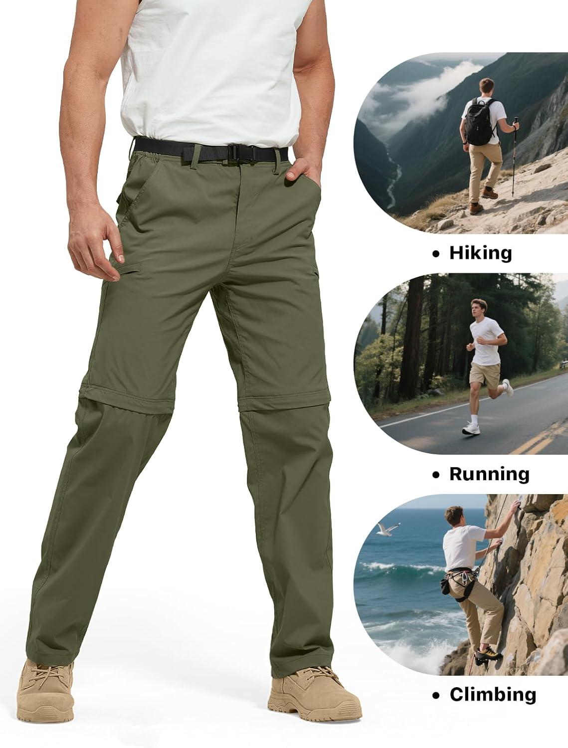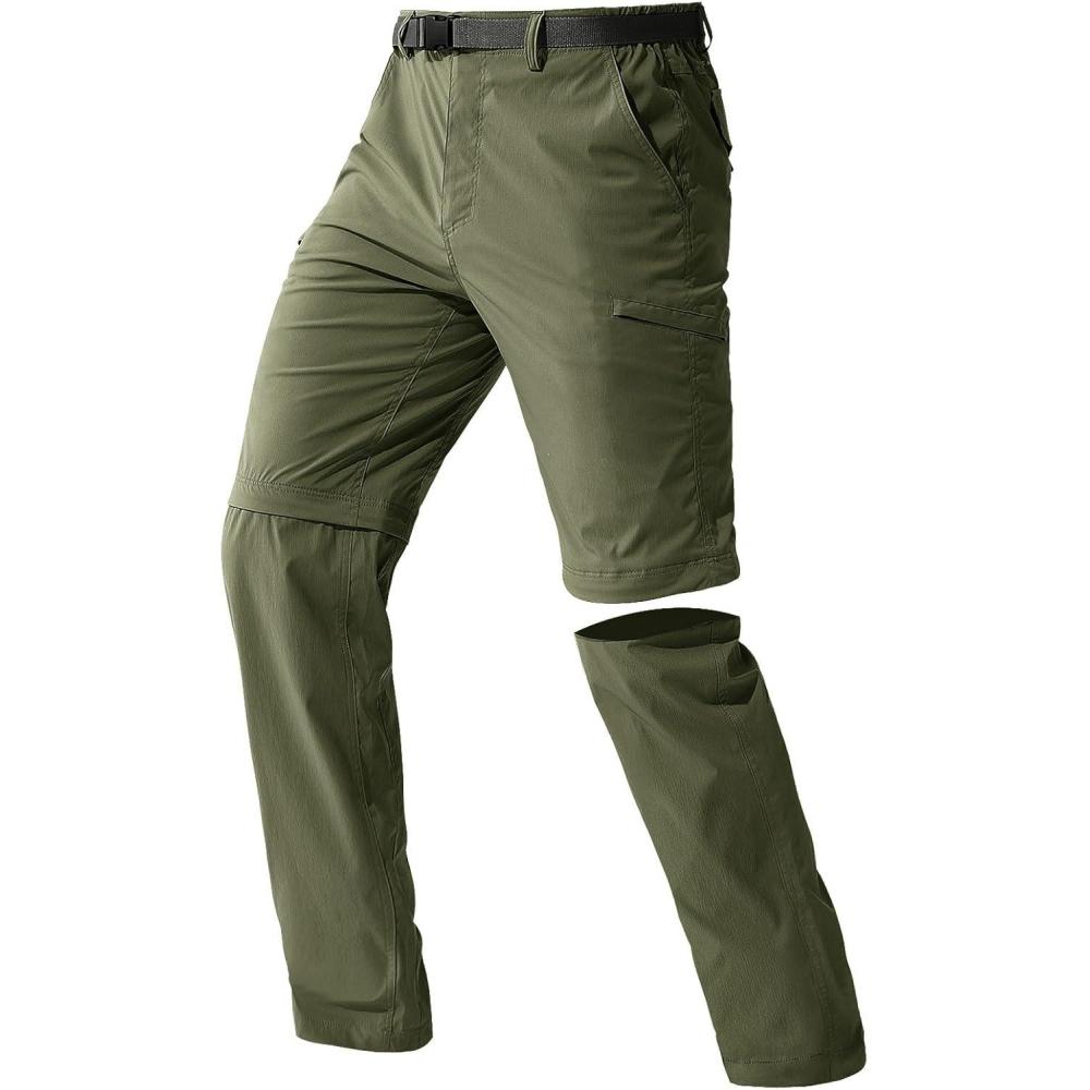 FREE SOLDIER Men's Outdoor Convertible Hiking Pants with Belt Lightweight Quick Dry Tactical Cargo Pants Nylon Spandex(Army Green)