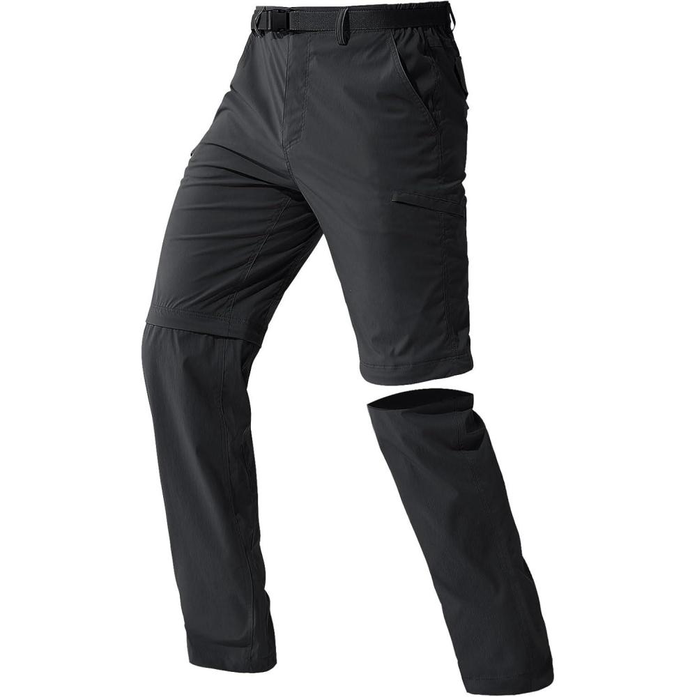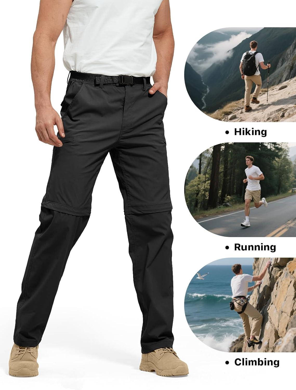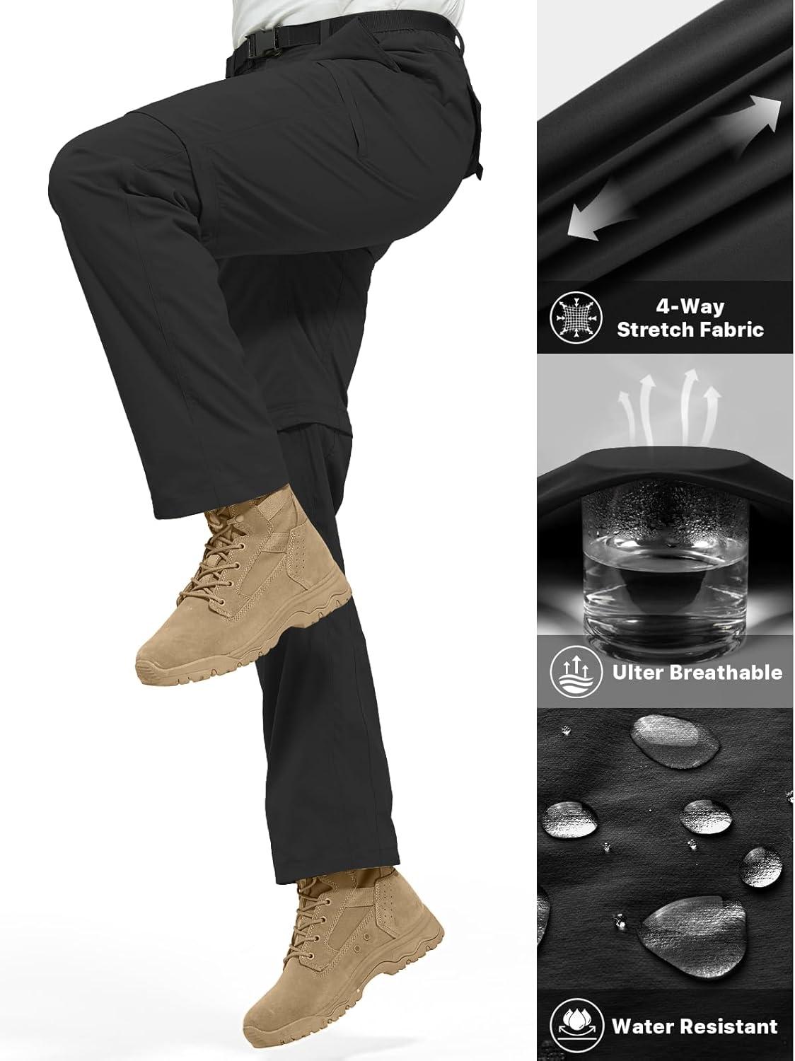 FREE SOLDIER Men's Outdoor Convertible Hiking Pants with Belt Lightweight Quick Dry Tactical Cargo Pants Nylon Spandex(Black)