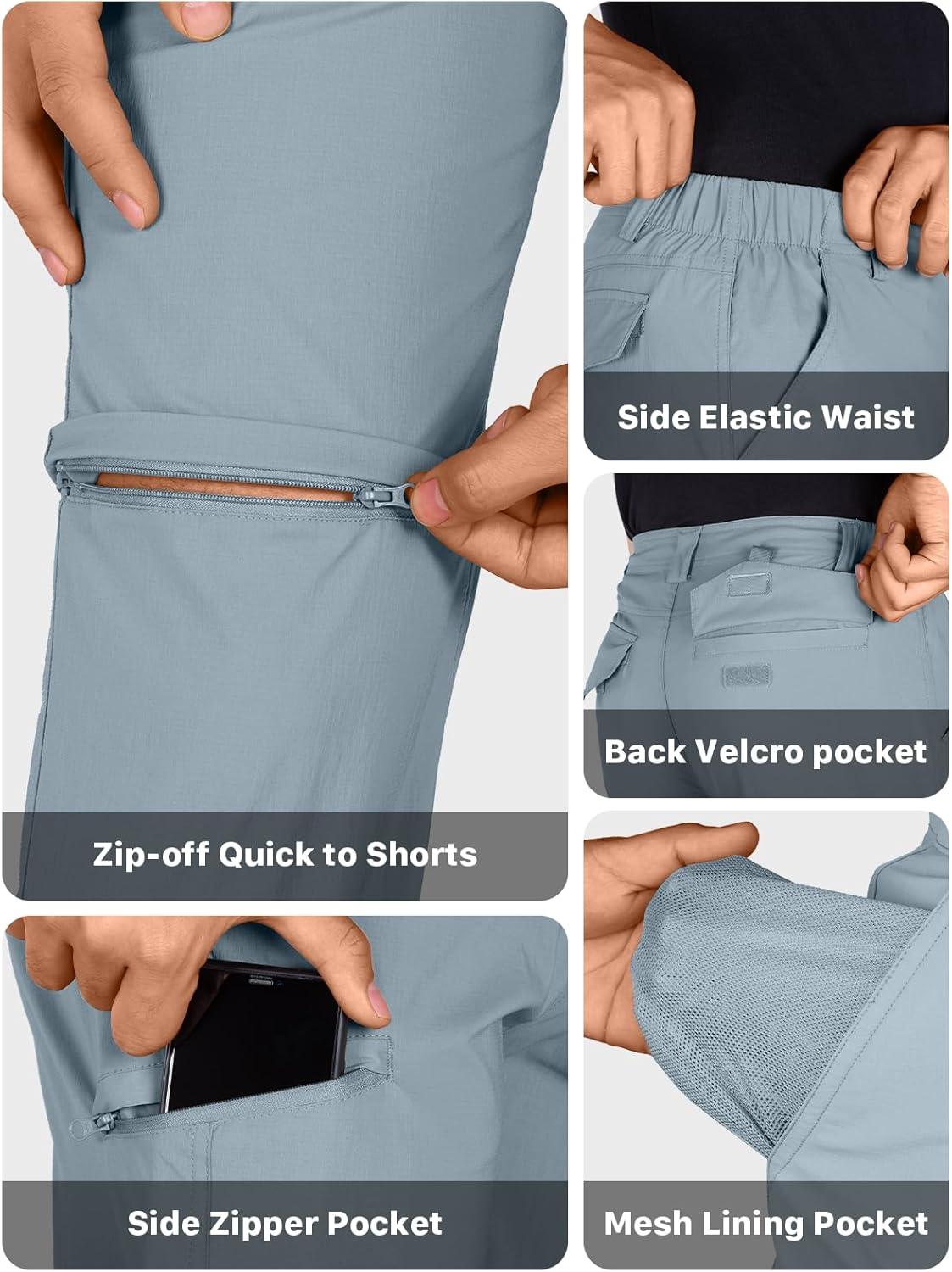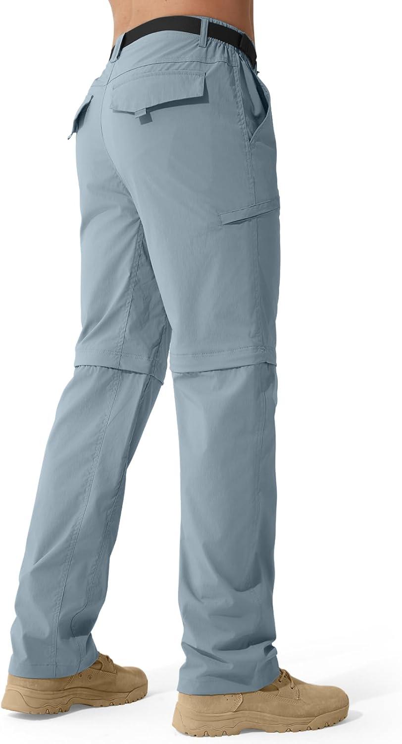 FREE SOLDIER Men’s Outdoor Convertible Hiking Pants with Belt Lightweight Quick Dry Tactical Cargo Pants Nylon Spandex(Blue Gray)